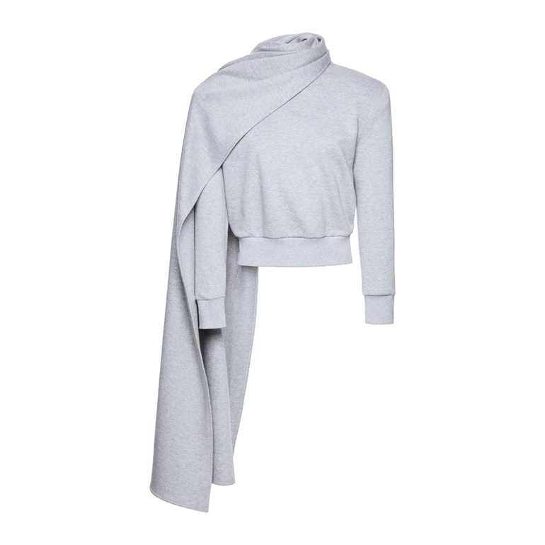 Sweatshirt with classic crew neckline, long sleeves and draped scarf.