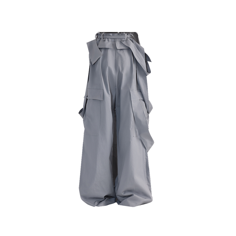 Pants with exaggerated wide legs, paperbag waist and cargo pockets.