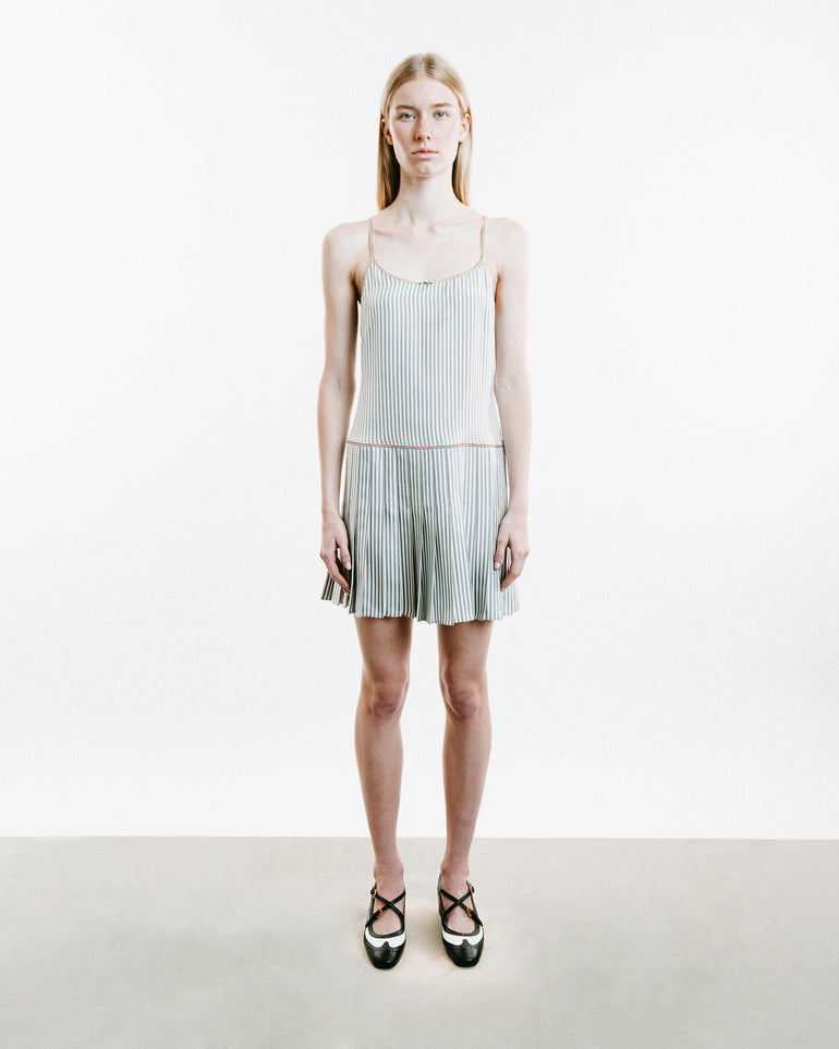 Mini Twill Pleated Bottom Slip Dress