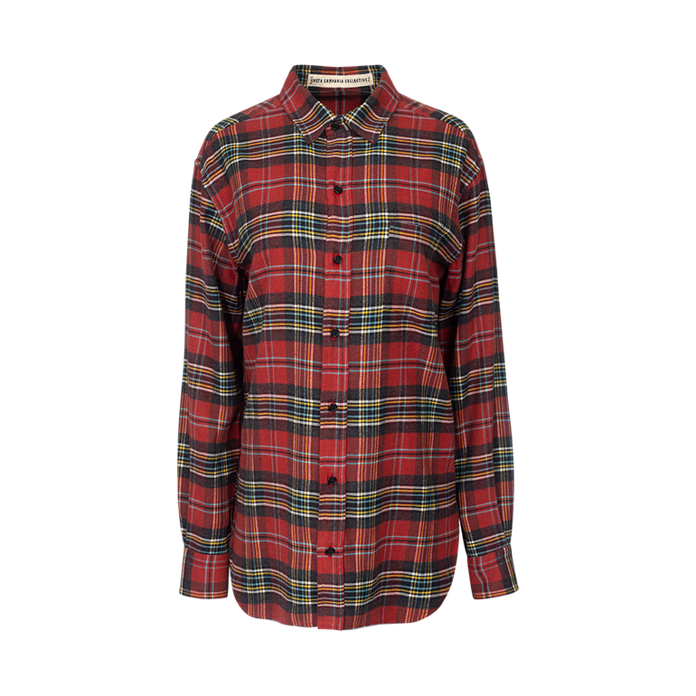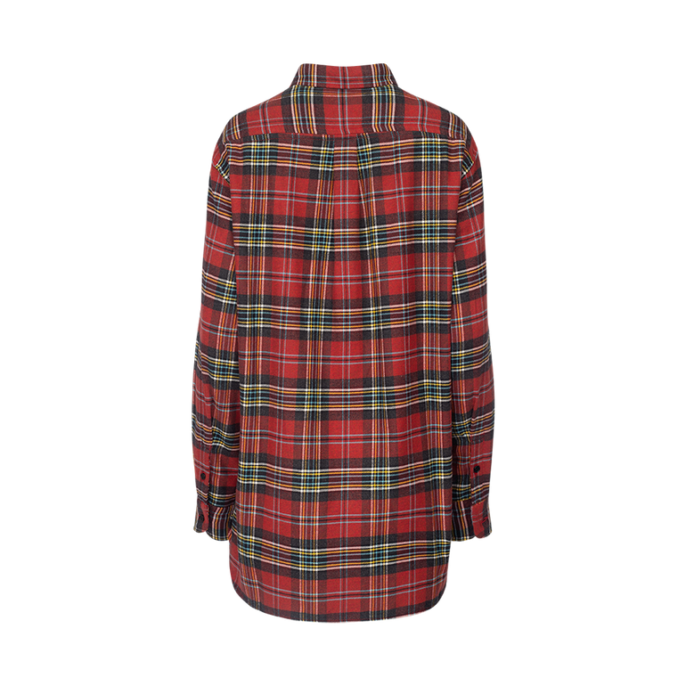 Long-sleeved shirt with classic collar, button front and rounded hem.