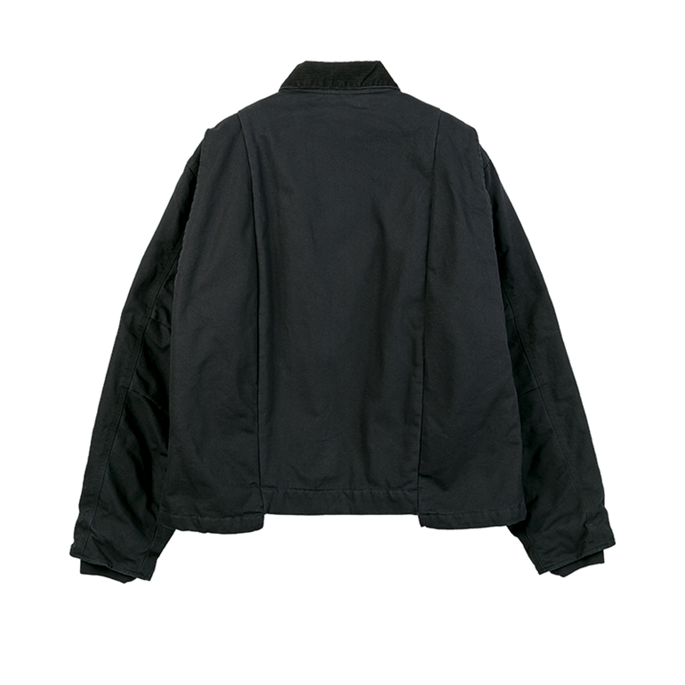 Jacket with spread collar neckline, two chest pockets, front zip and two side pockets at front.