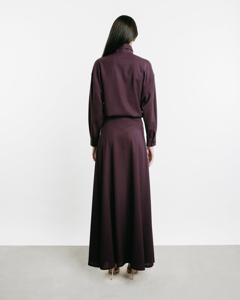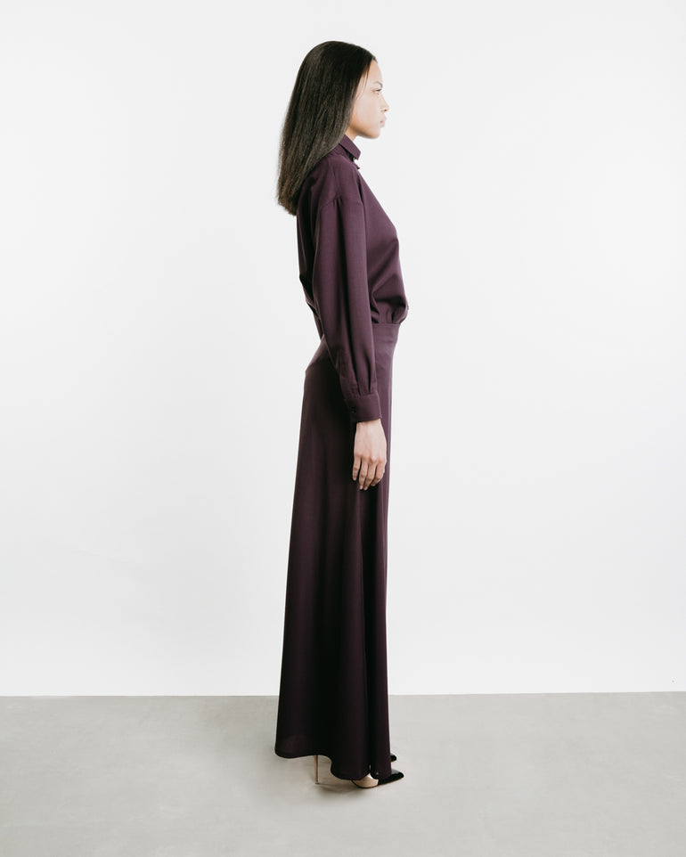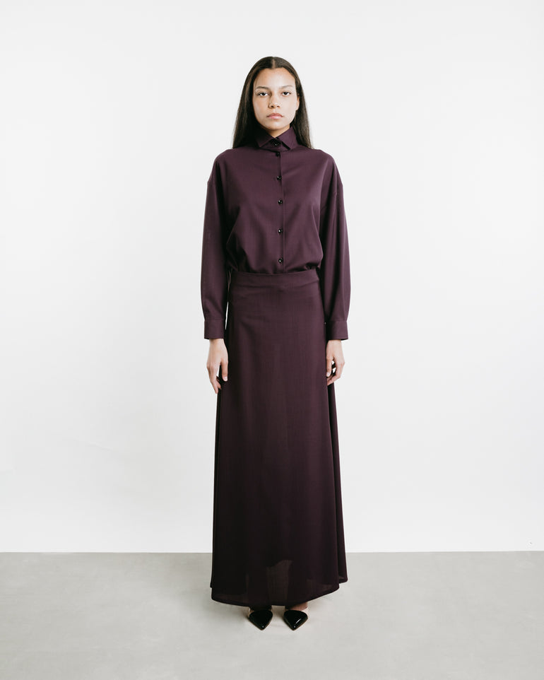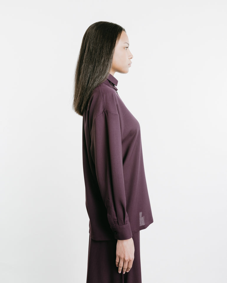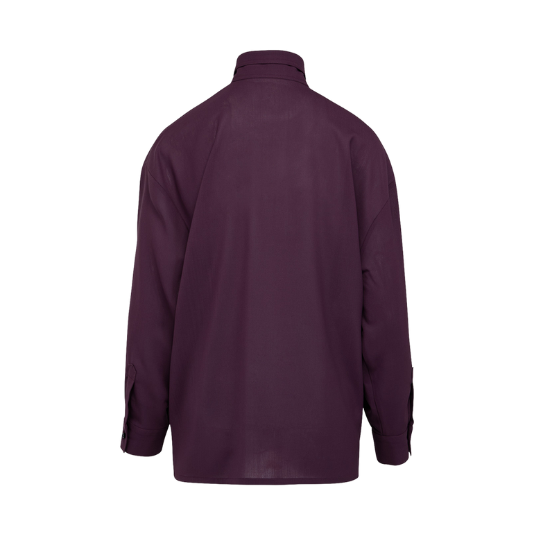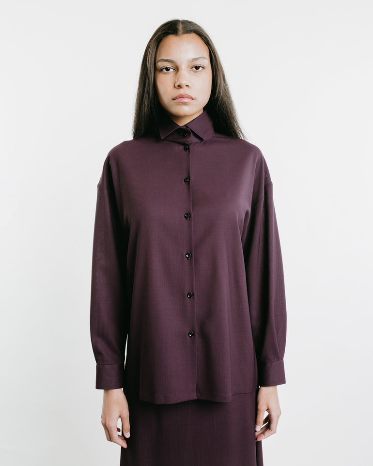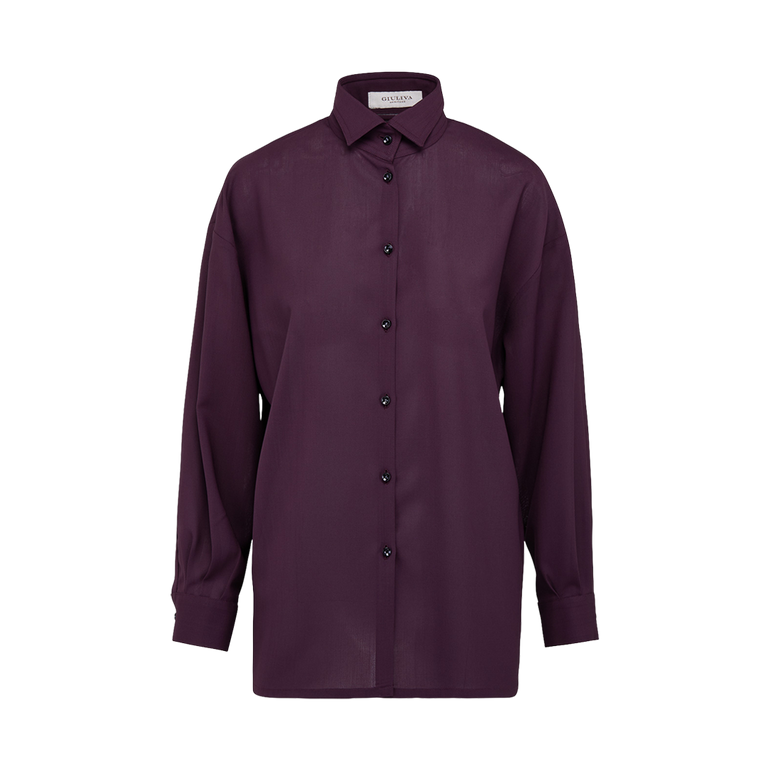Oversized shirt with wing collar and long sleeves with button cuffs.