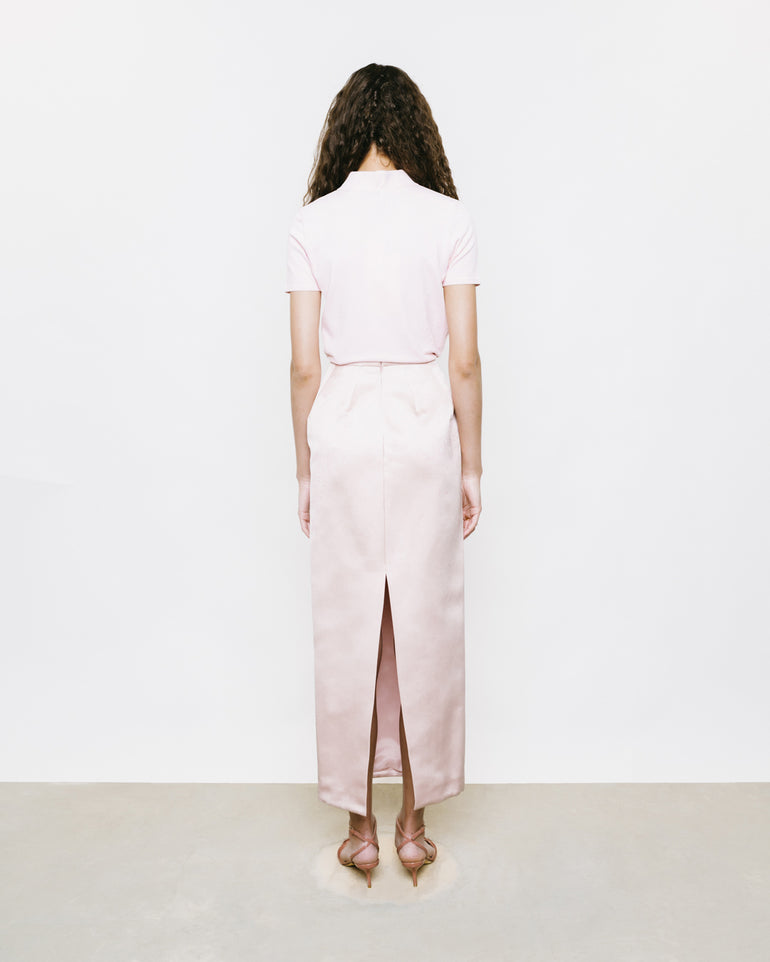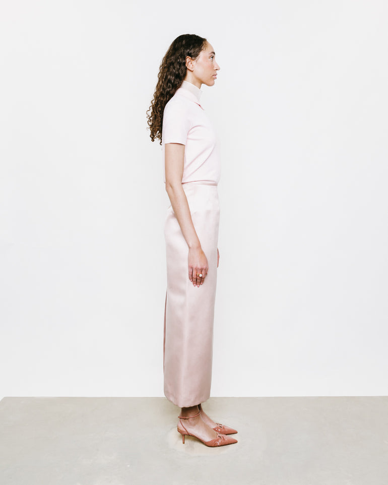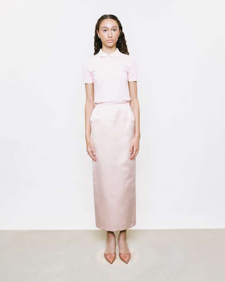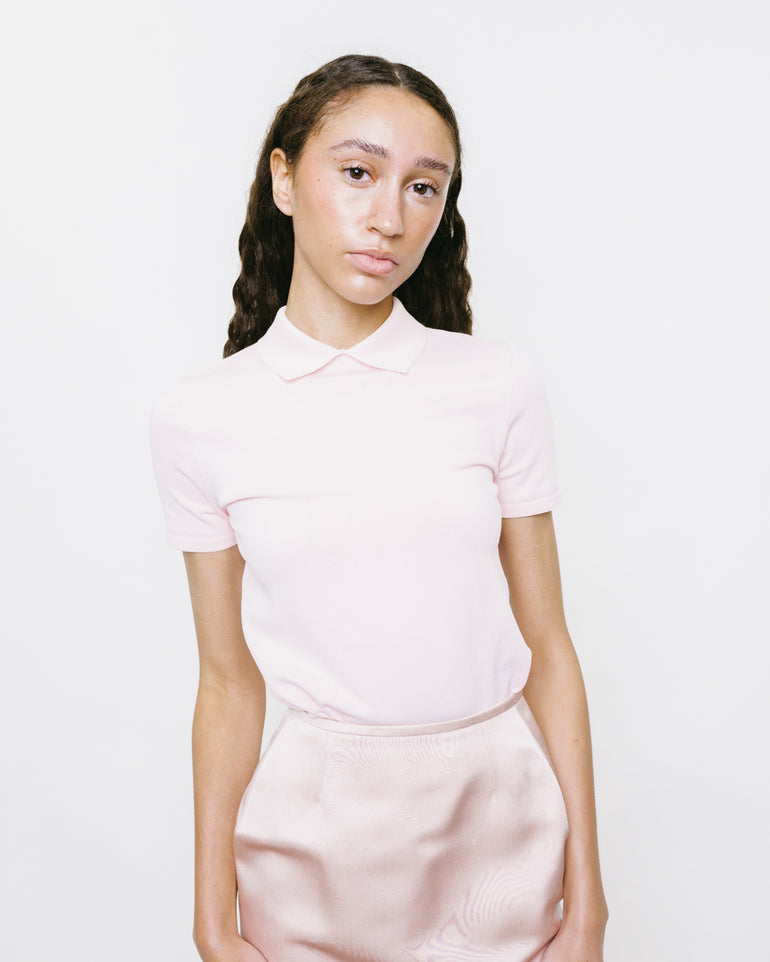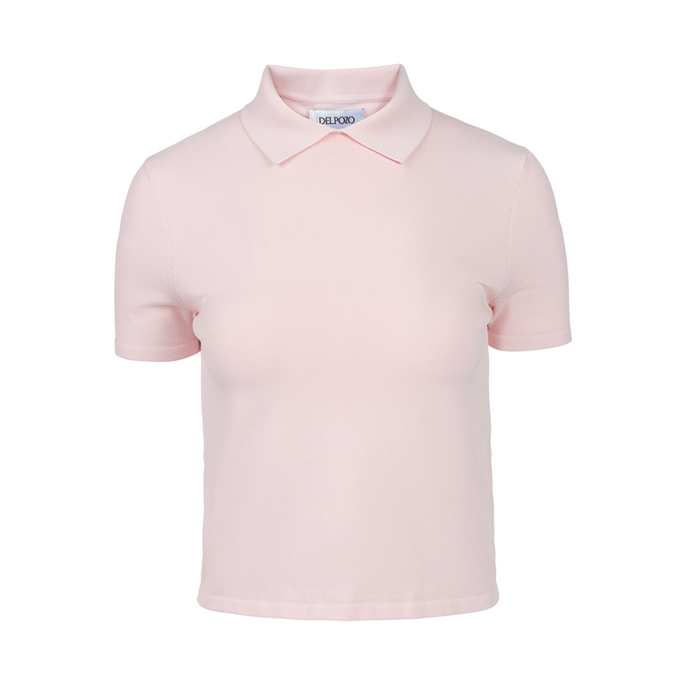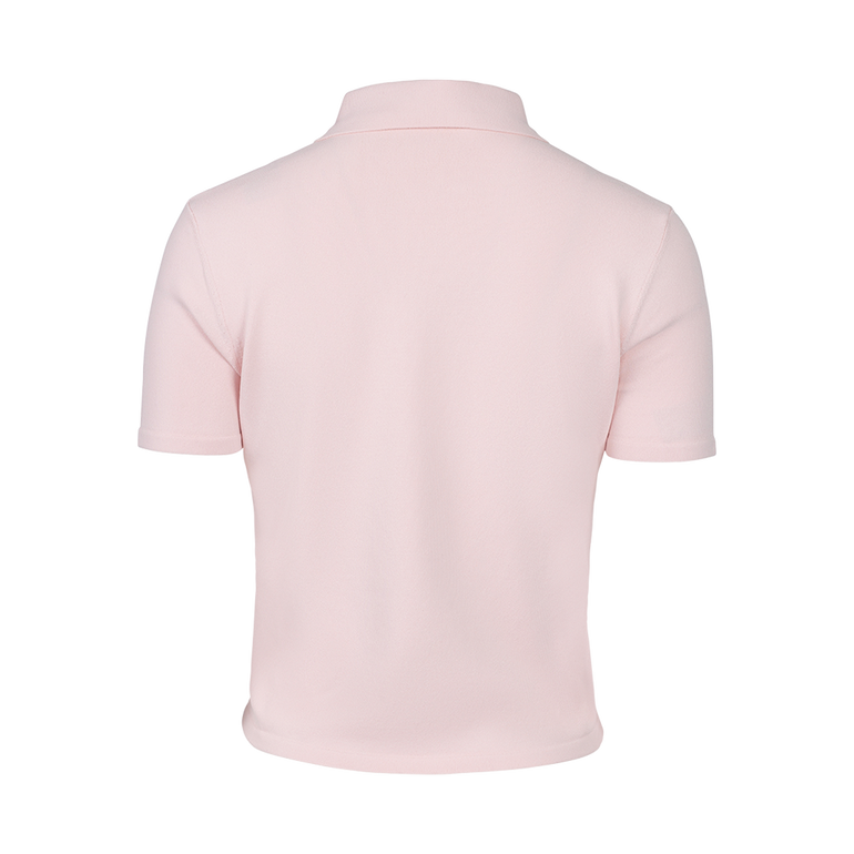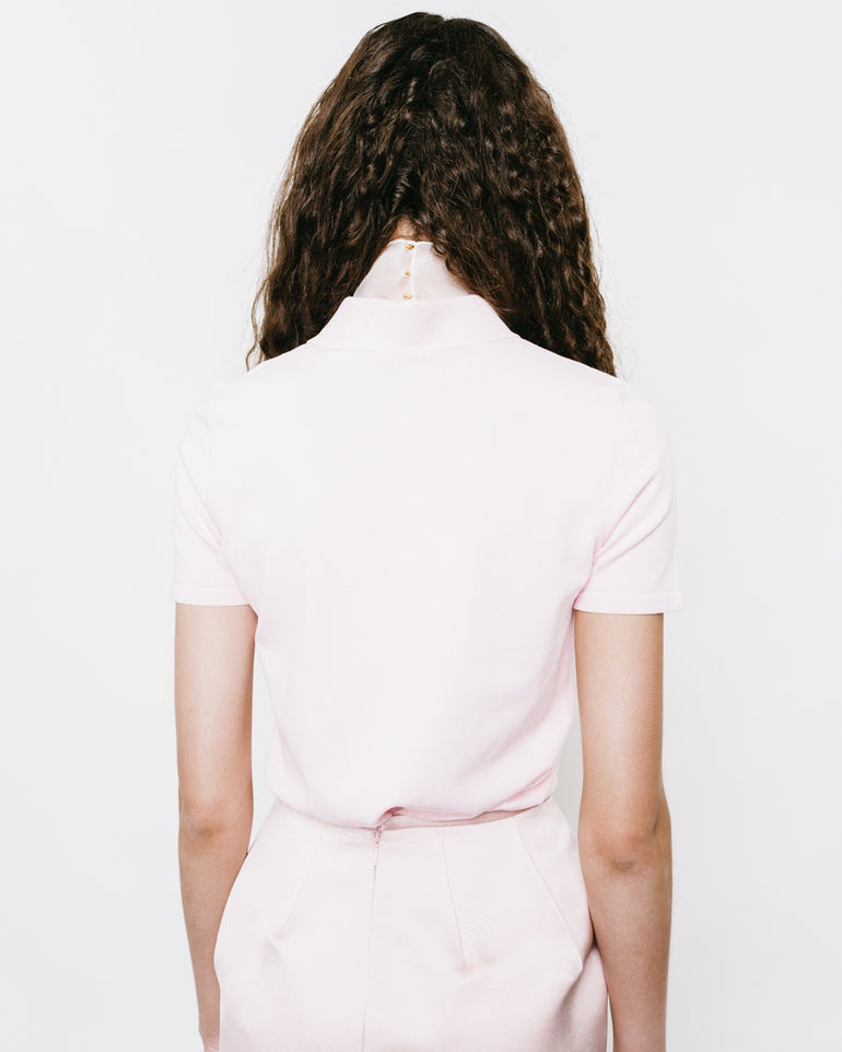 Knit polo shirt with short sleeves, Organza collar sold separately.