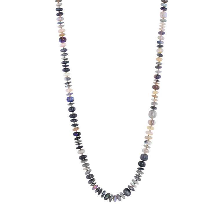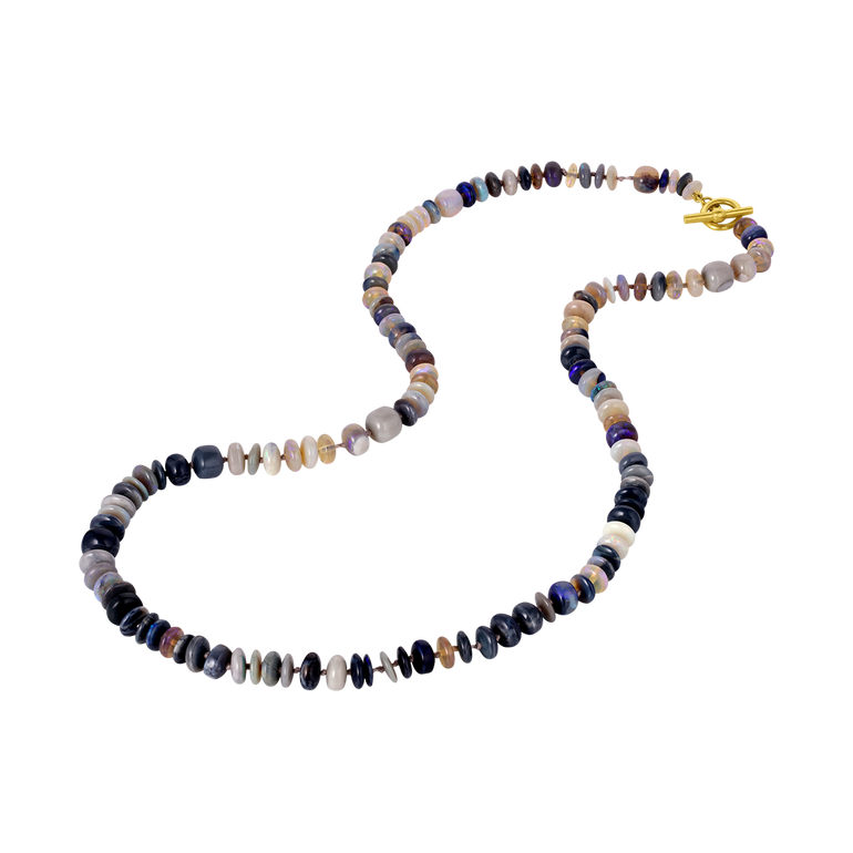 One-of-a-kind black opal bead necklace with toggle clasp. Approx. 23" long with 6-11MM beads.