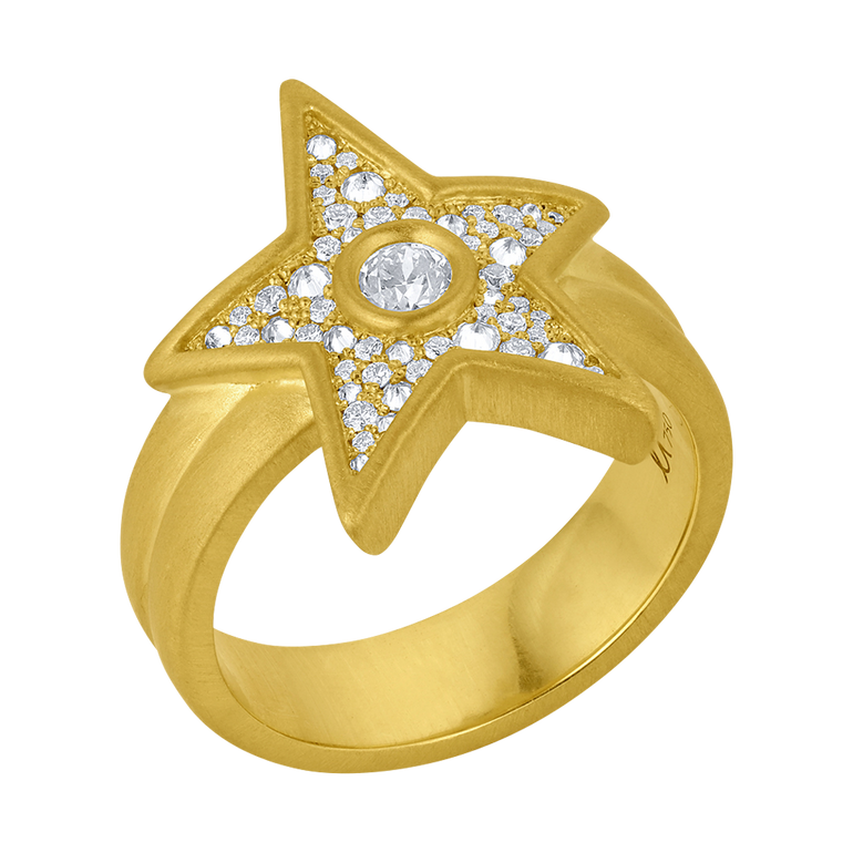 Star ring featuring approx. 0.19 CT. old mine cut diamond and approx. 0.33 CT. T.W. diamond pavé. Size 7.5.