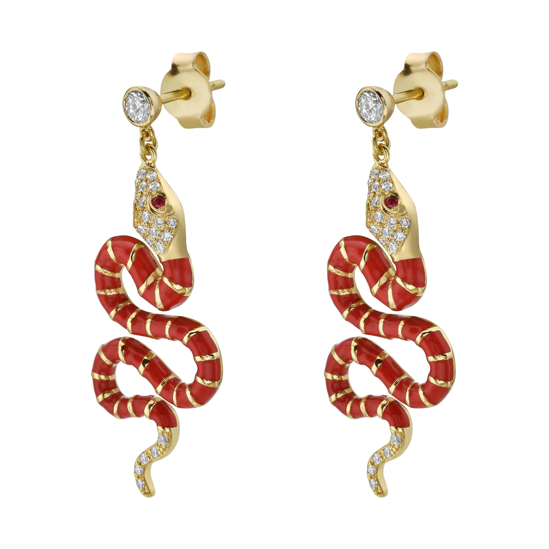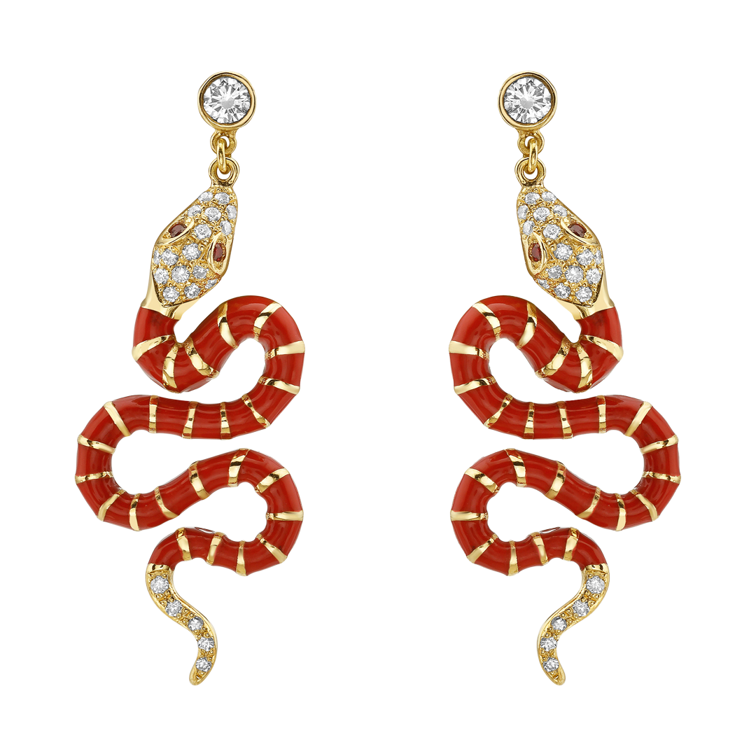 LIONHEARTNouvelle Diamond Red Enamel Serpent Earrings