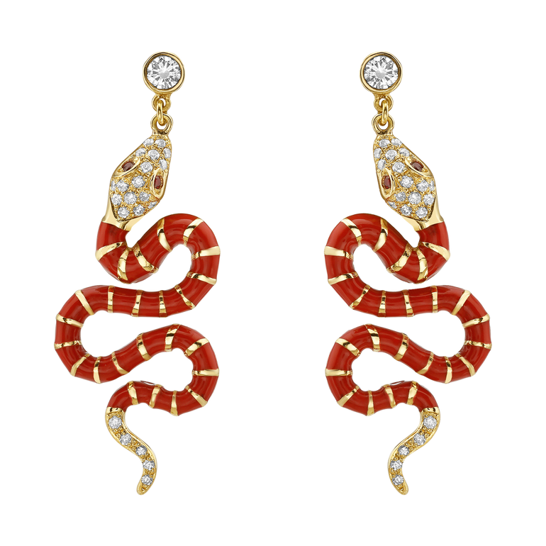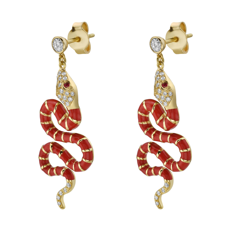 Nouvelle Diamond Red Enamel Serpent Earrings
