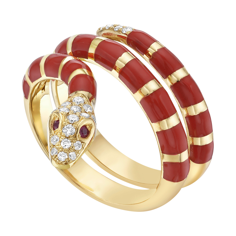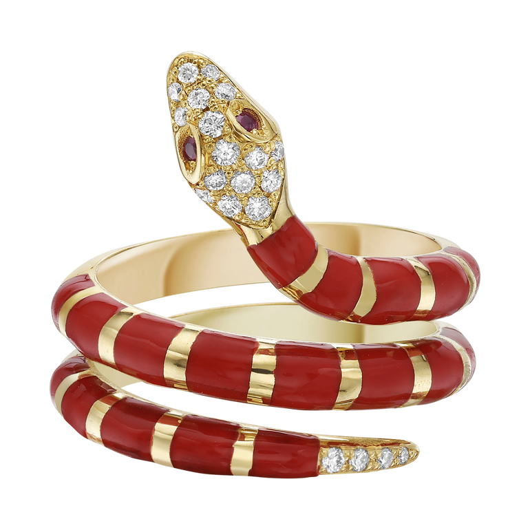 Nouvelle Serpent Red Enamel Coil Ring