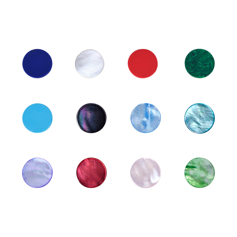Interchangeable medallion with 0.65 CT. T.W. diamonds and 1.60 CT. T.W. emeralds. Comes with 12 different interchangeable gemstone discs, including: Lapis Lazuli, Turquoise, Red Coral Paste, Malachite, Black Mother of Pearl, Mother of Pearl, (Dyed) Blue Mother of Pearl, Teal Mother of Pearl, Purple Mother of Pearl, Red Mother of Pearl, Pink Mother of Pearl and Green Mother of Pearl.