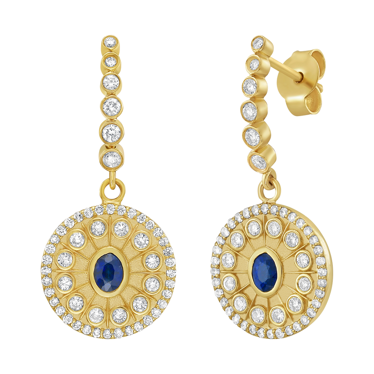 Dangle earrings with 0.55 CT. T.W. diamonds and 0.25 CT. T.W. sapphires. For pierced ears.