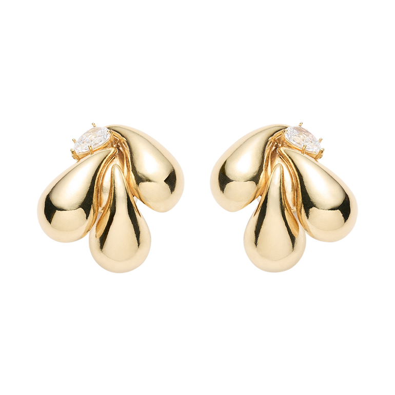 Teardrop-shaped earrings featuring marquise-cut crystal. For pierced ears.