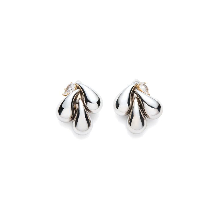 Teardrop petal bloom earrings in polished silver-plated brass.