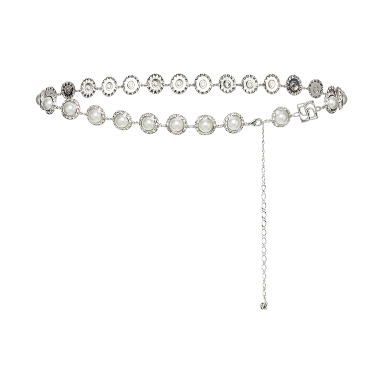 Belt with faux pearls, crystal embellishments and floral details.