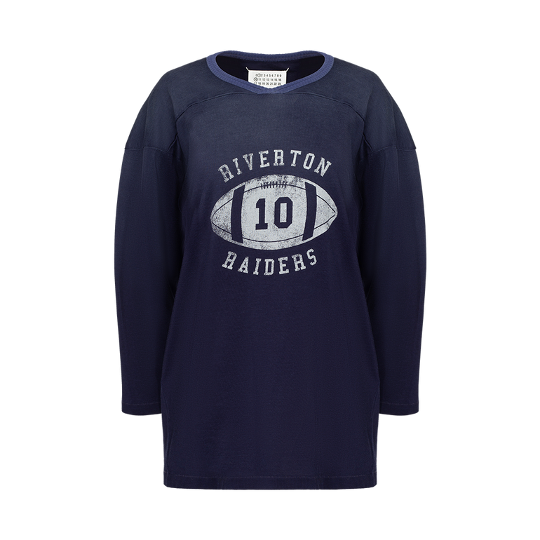 T-shirt with V-neckline, three-quarter sleeves and football print.