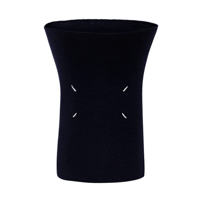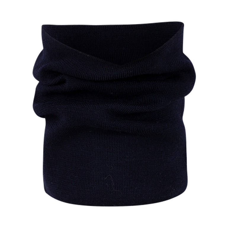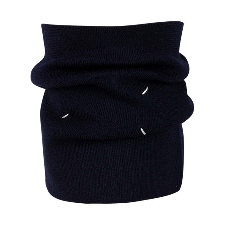 Neck warmer in 18-gauge ribbed knit with signature white stitching. Approx. 7.25"L x 5.75"W.