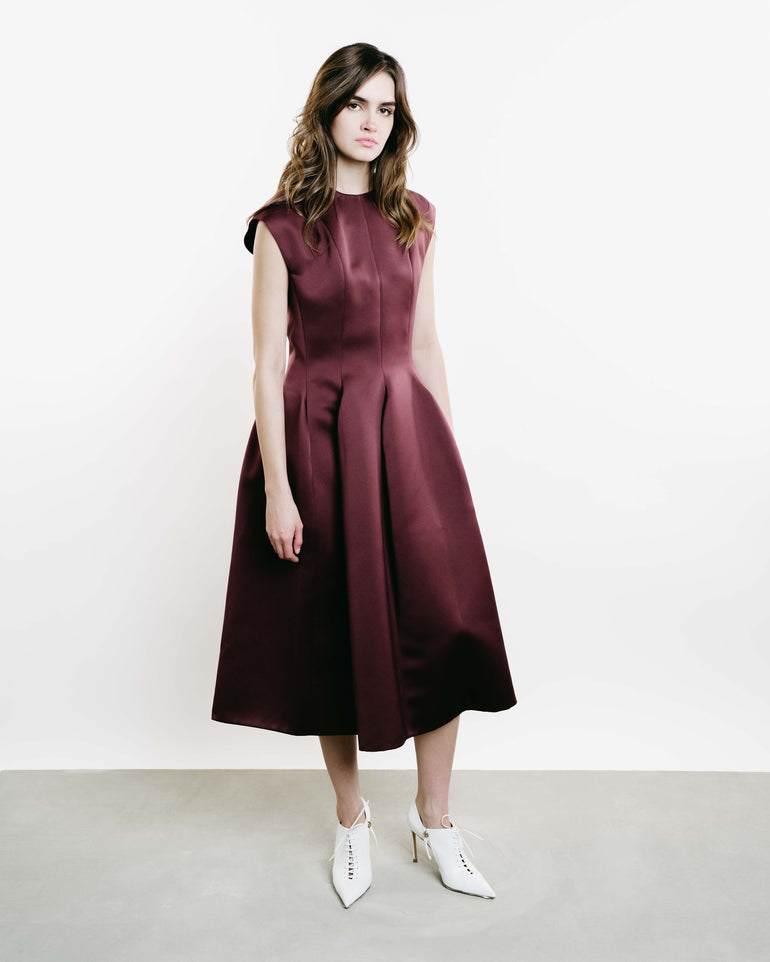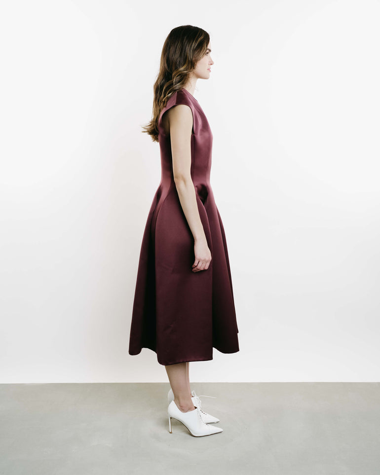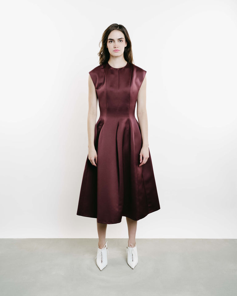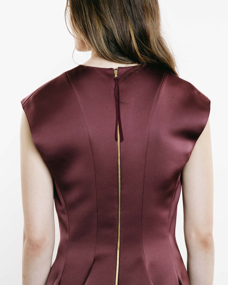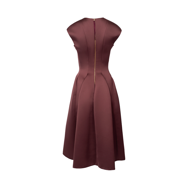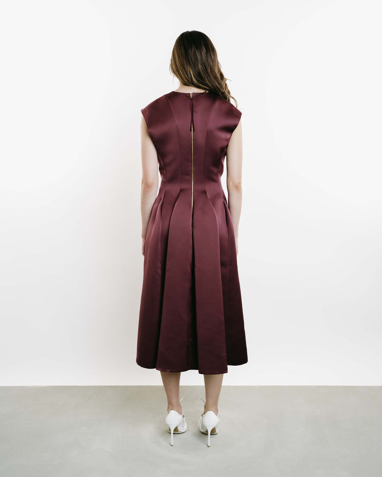 Sleeveless midi dress in paneled design with back zip.