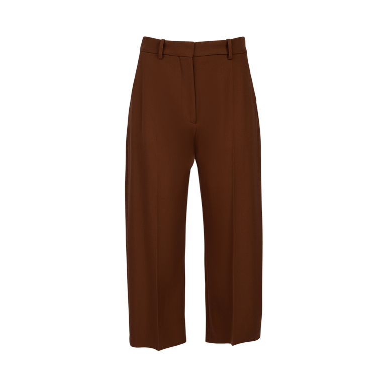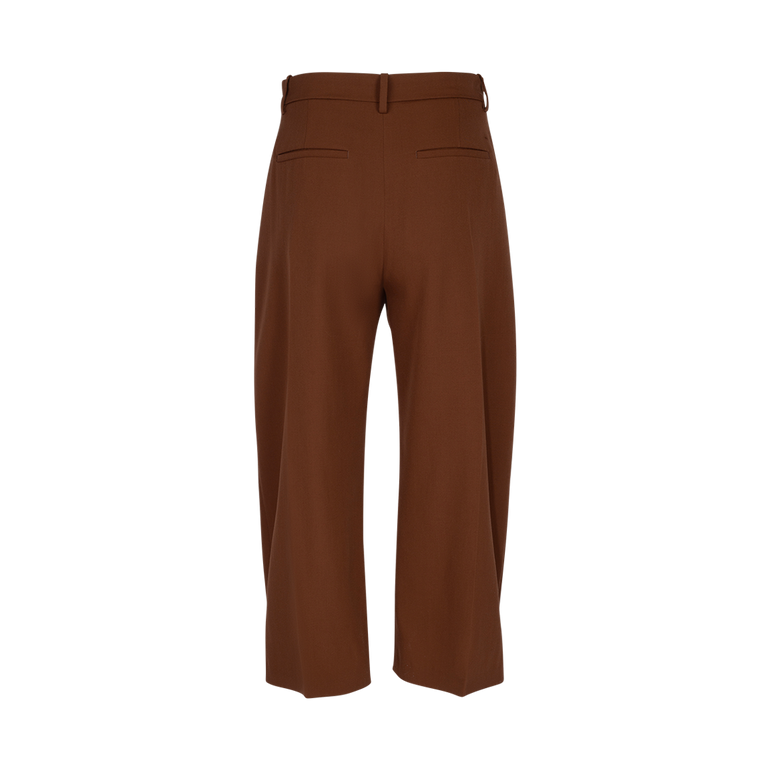 Cropped trousers with zip-and-hook closure, two side pockets and back welt pockets.