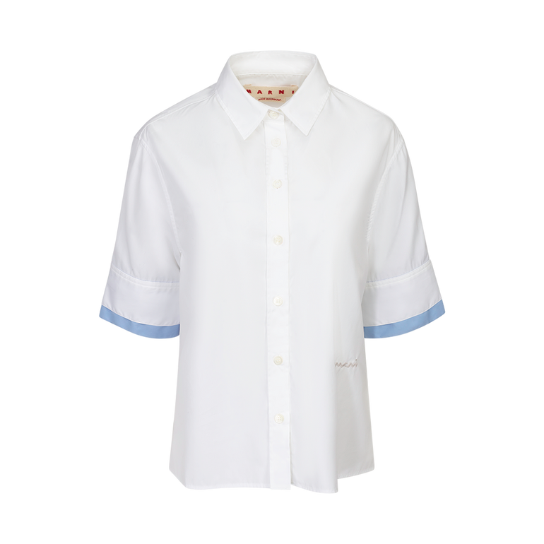 Classic shirt with short sleeves, contrast double cuff detail and hand-embroidered Marni symbol.