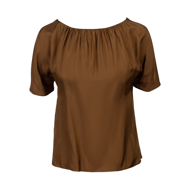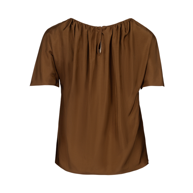 Top with bateau neckline, short sleeves and back keyhole closure.