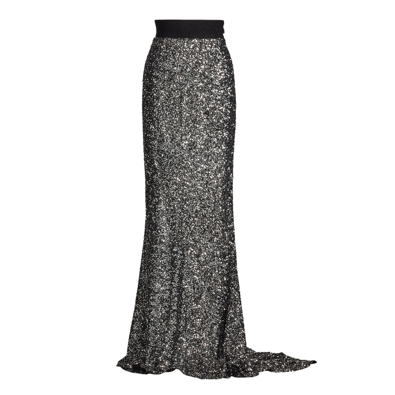 Form-fitted maxi skirt with high waist, slight flare and concealed side zip.