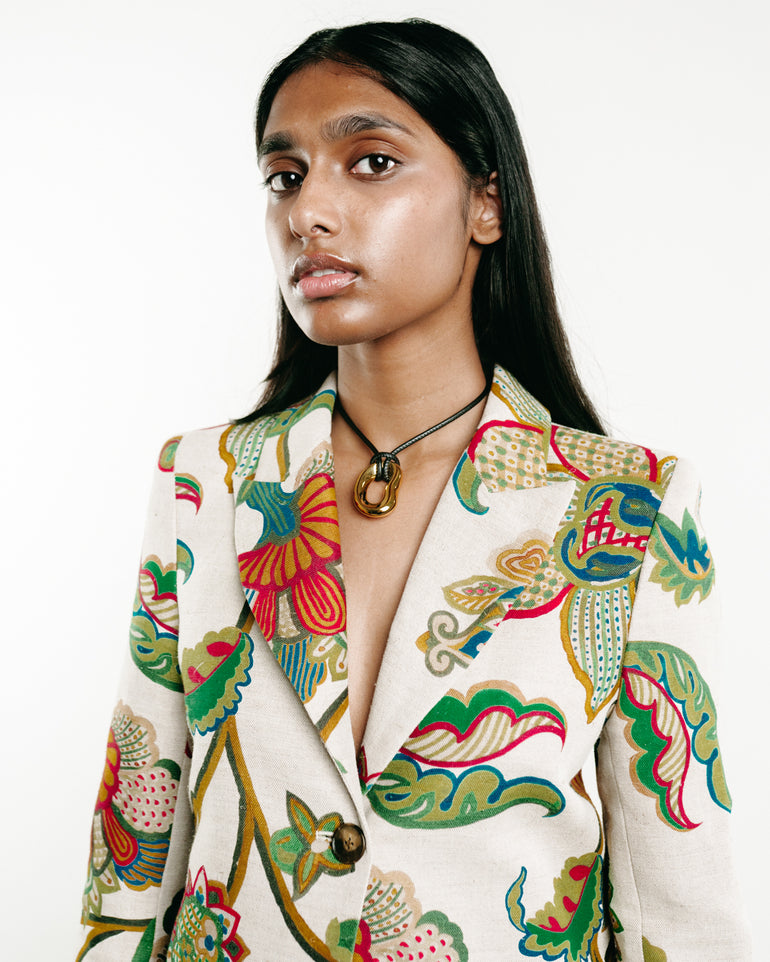 Necklace with gold vermeil pendant suspended from an adjustable 35.4" leather cord.