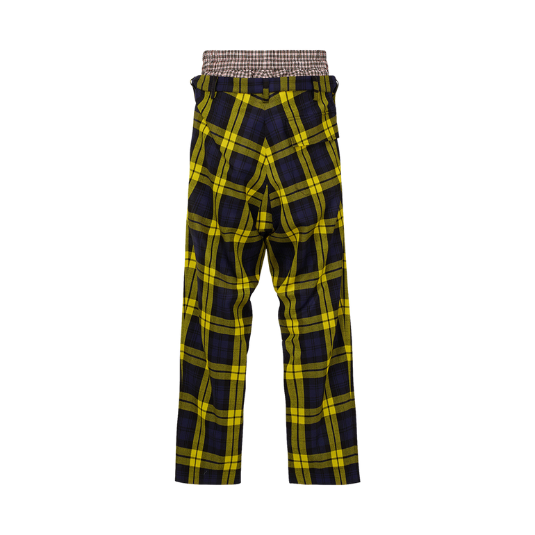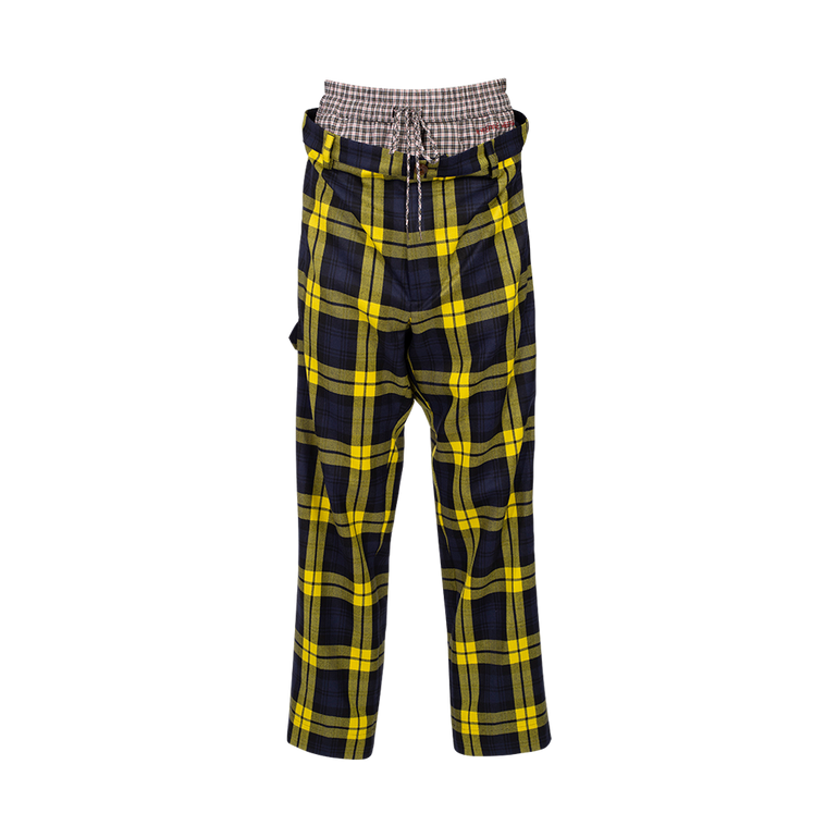 Trousers in tie-front design with belt loops, slightly dropped crotch and concealed side pockets.