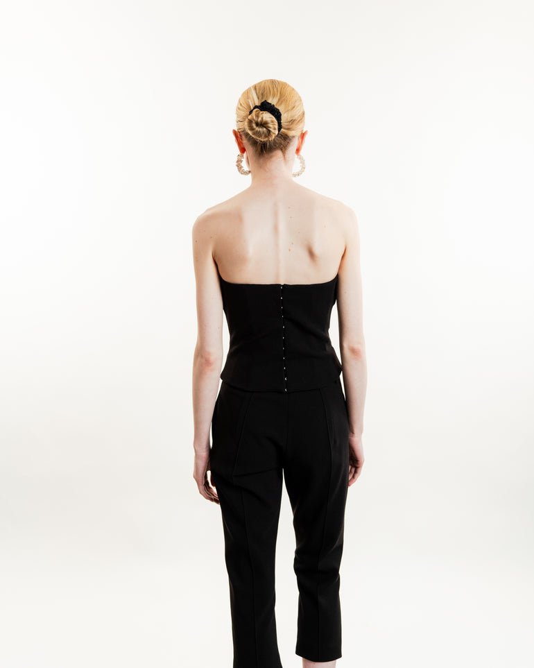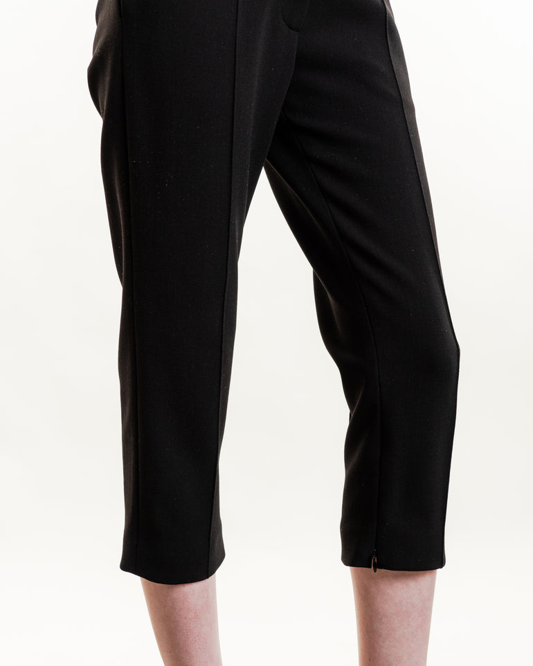 Skinny trousers with below-the-knee crop, zip front and belt loops. Lined.