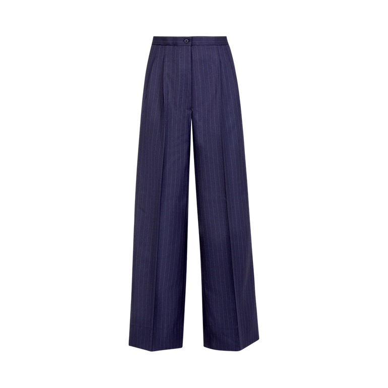 Tailored trousers with straight leg, relaxed fit, concealed front button fastening, side seam pockets and two front darts.
