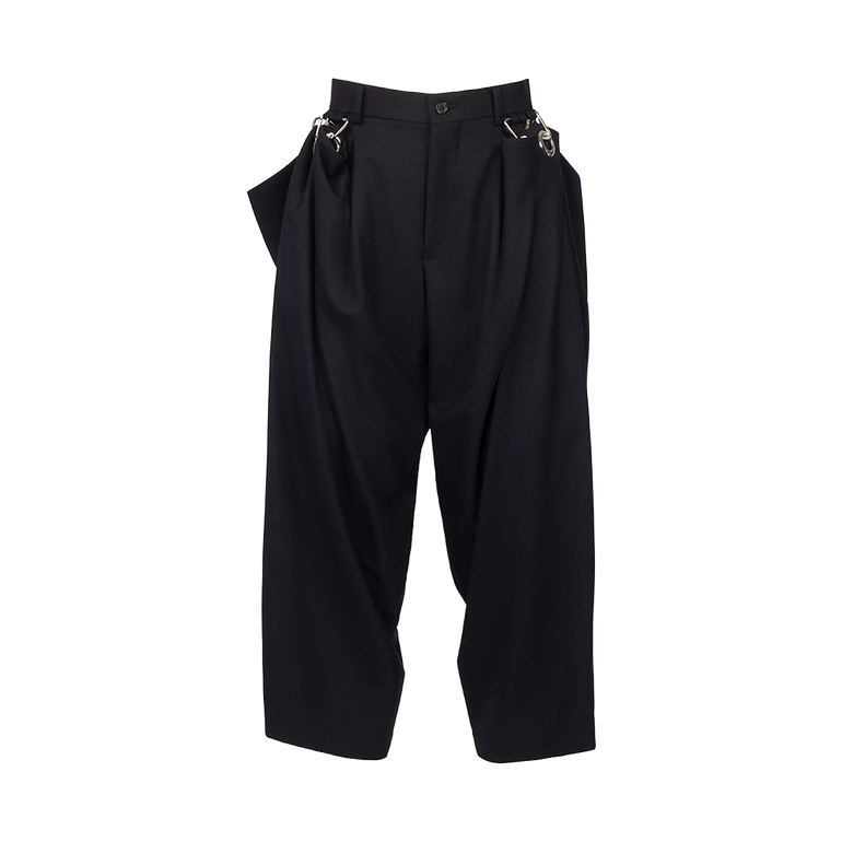 Pants with straight leg, extended sides and silver-tone grommet detailing.