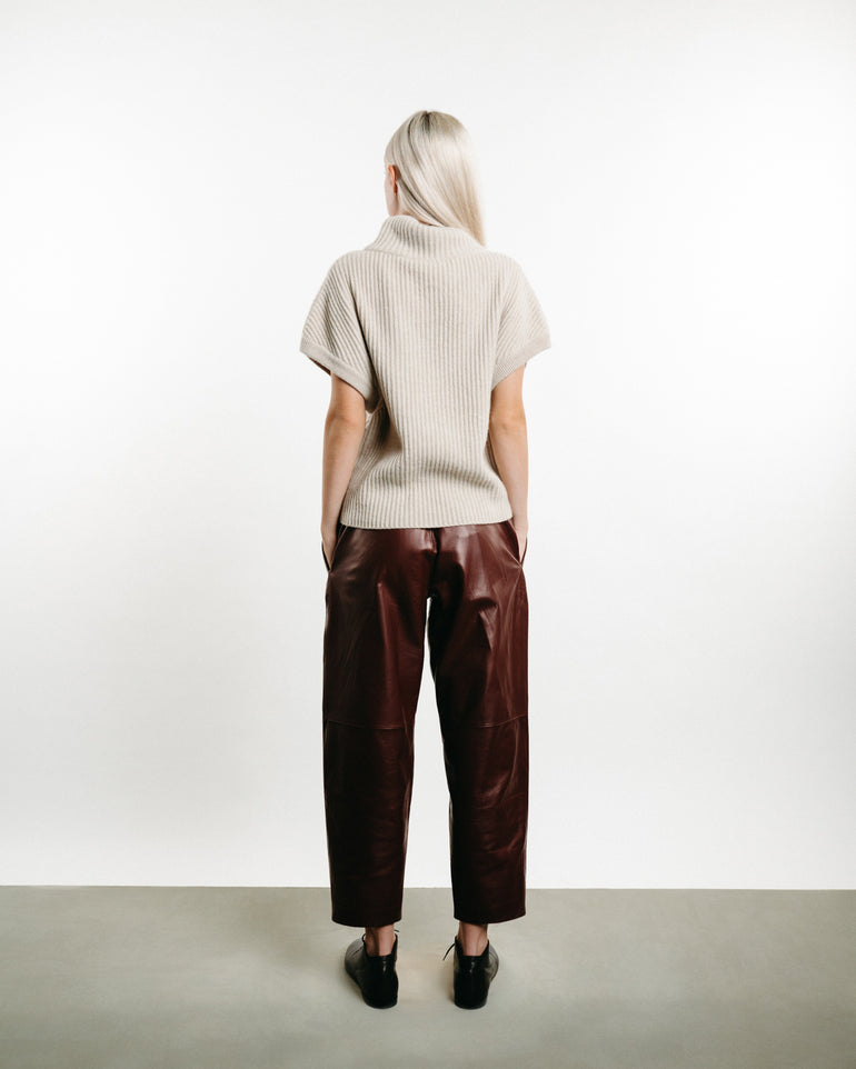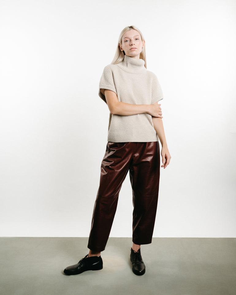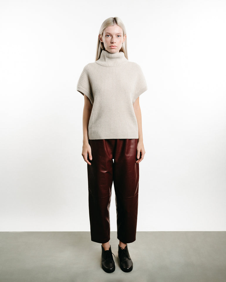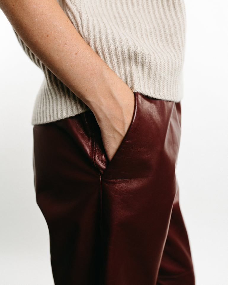 Cropped pants with elastic waistband, side slit pockets and straight silhouette.