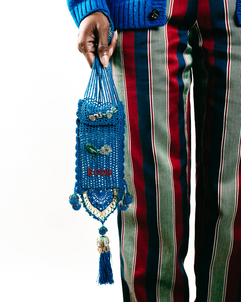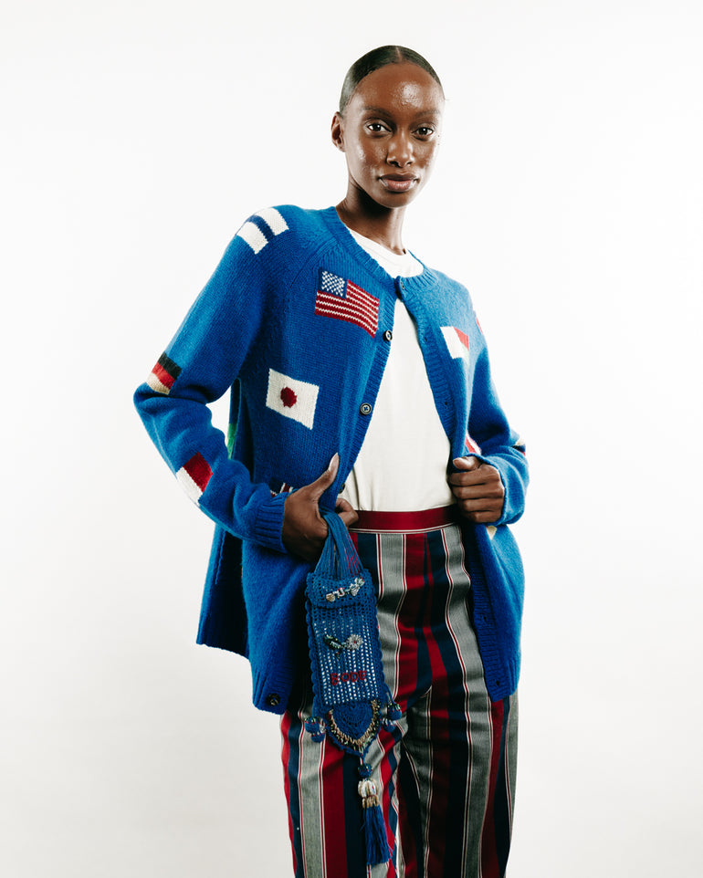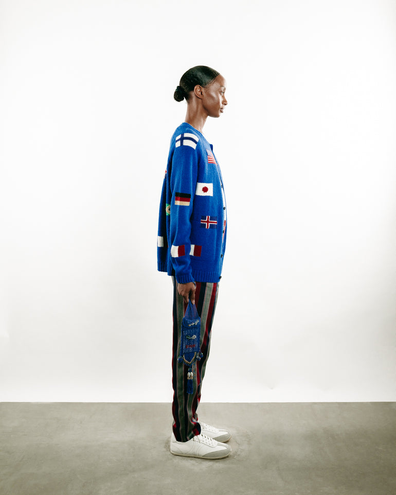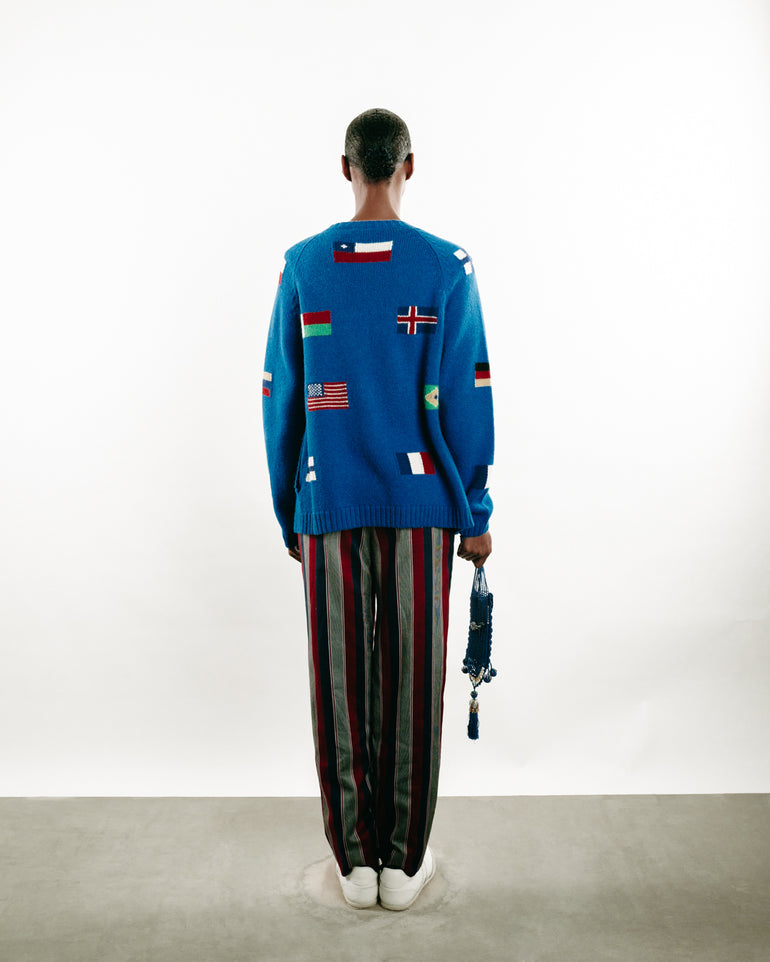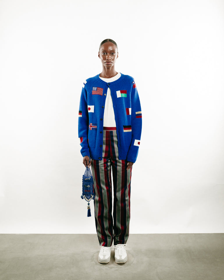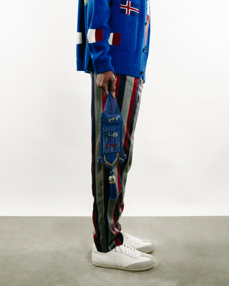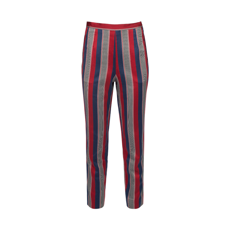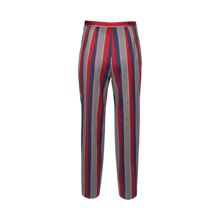 Tailored trousers inspired by 1960s deadstock yardage with high rise and straight leg.