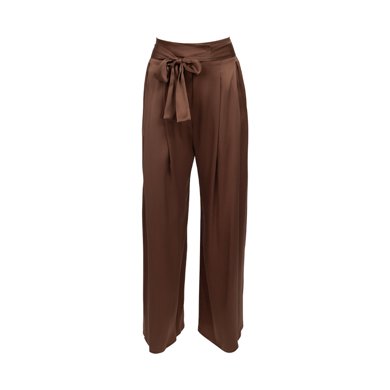 Wide-leg pants with self-tie bow at waist.