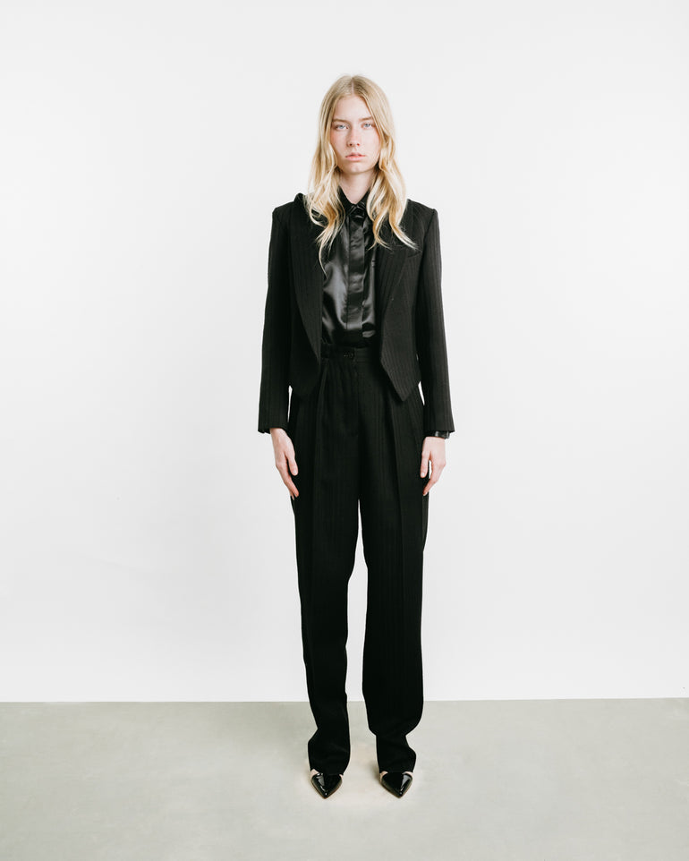 Tailored trousers with concealed button fastenings, front darts, large belt loops and slim fit.