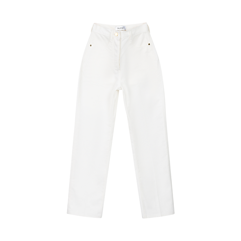 Ultra-high rise tailored trousers with long, straight legs. Cut from non-stretch cotton for a structured fit. Zip fastening at front.