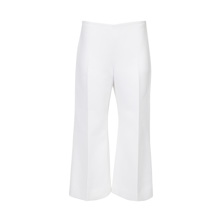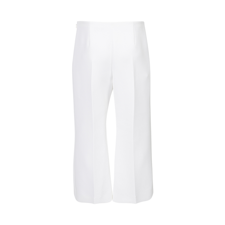 Crepe pants with low rise, flat front, kickflare legs, cropped length and side zip.