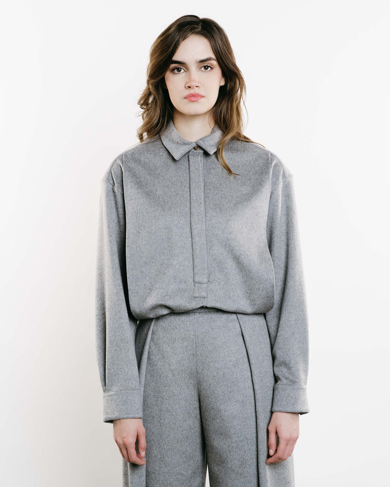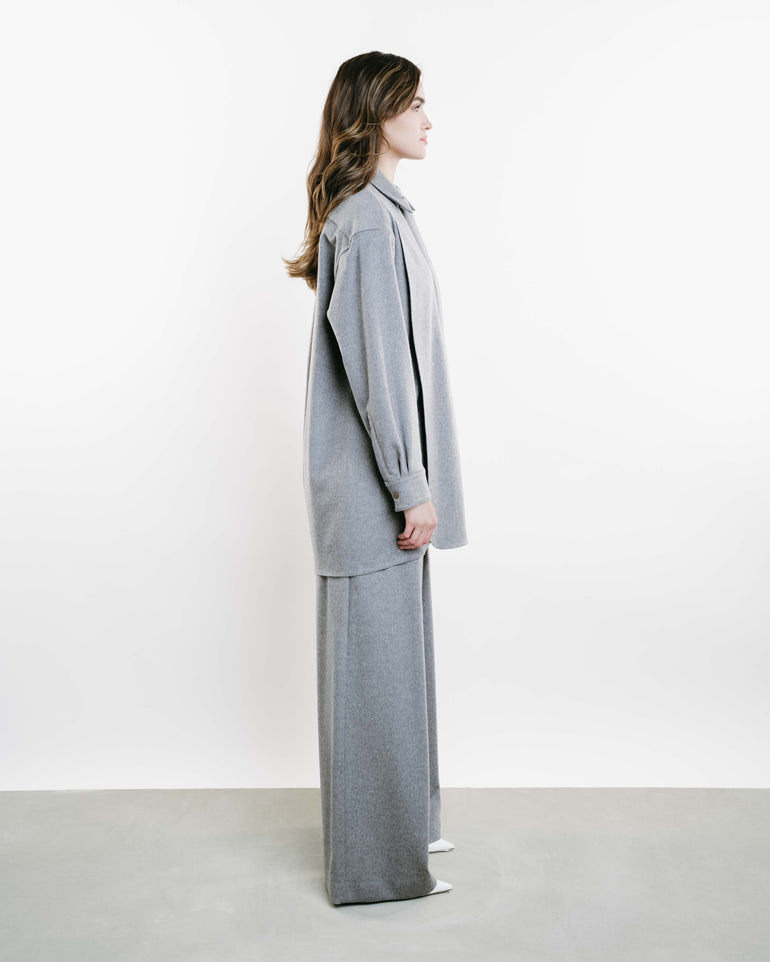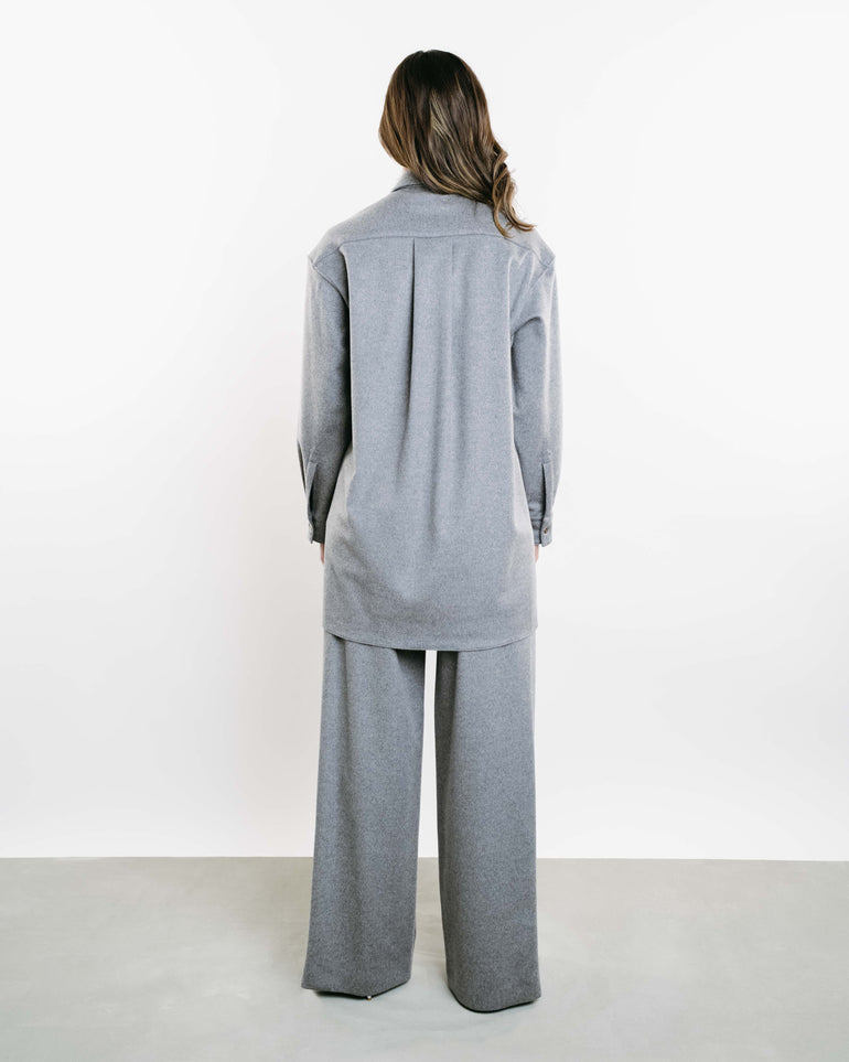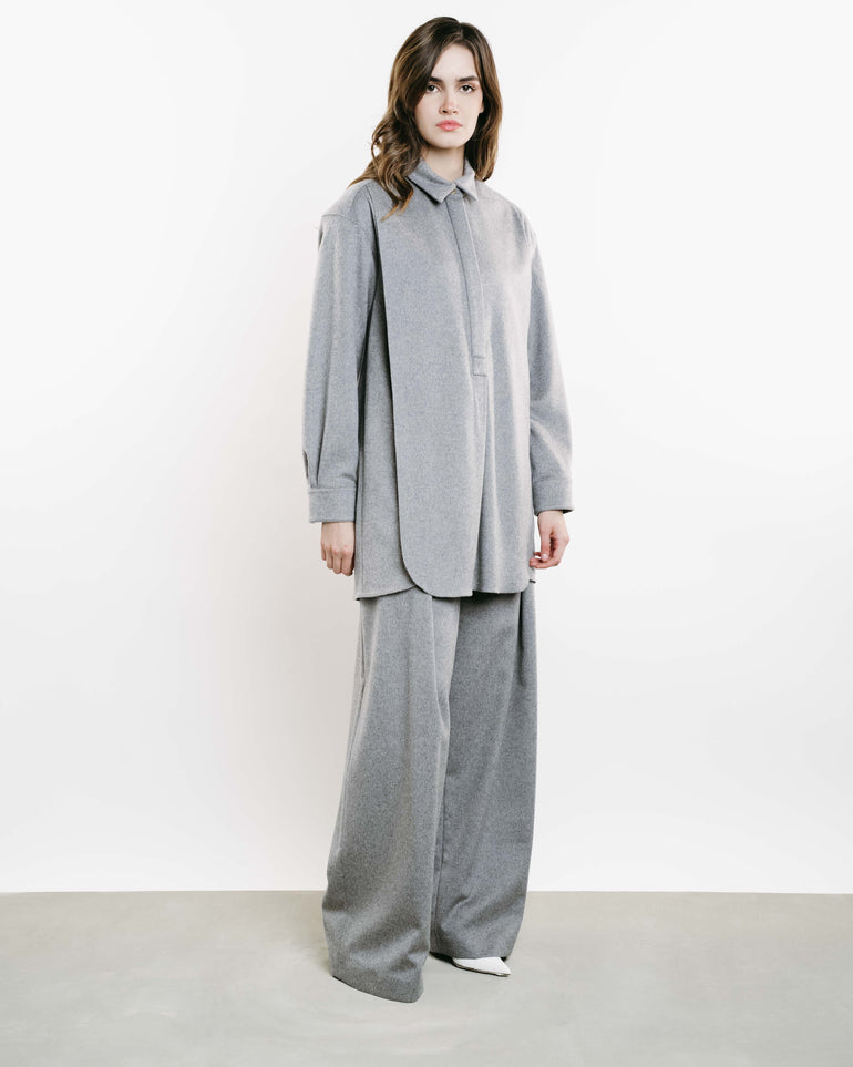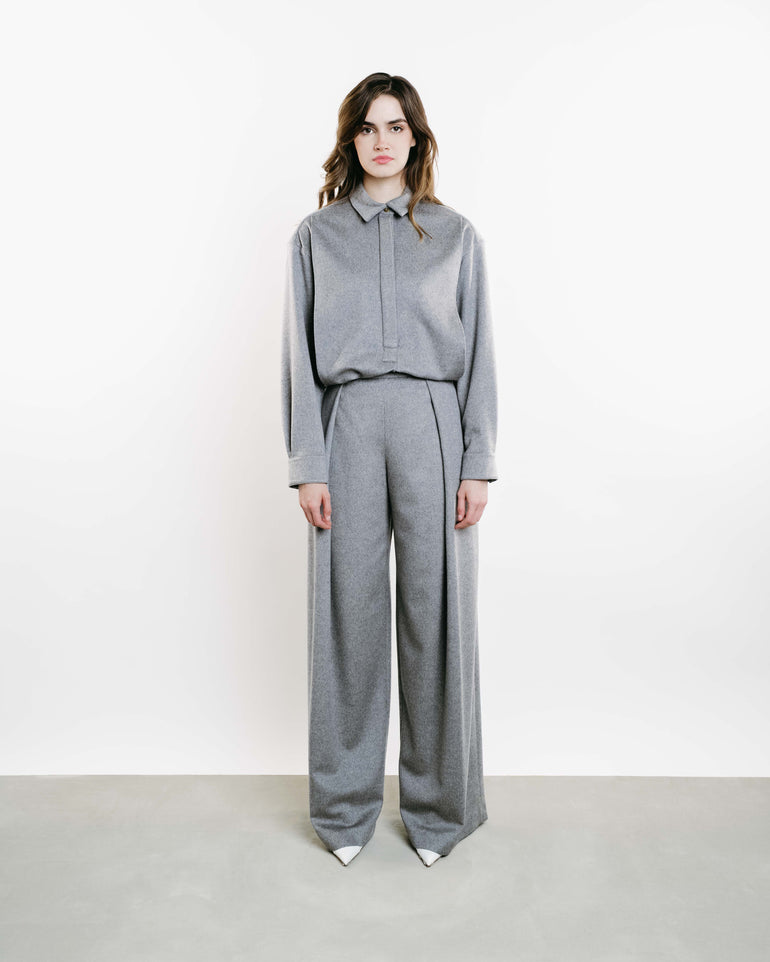 Trousers with wide legs, pleated detailing and back welt pockets.