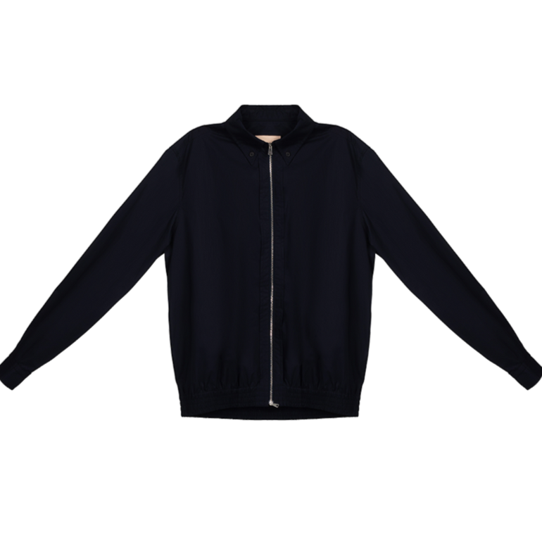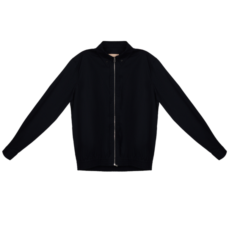 Shirt with buttoned collar, zip front, front flap pocket, long sleeves and elasticated hem.