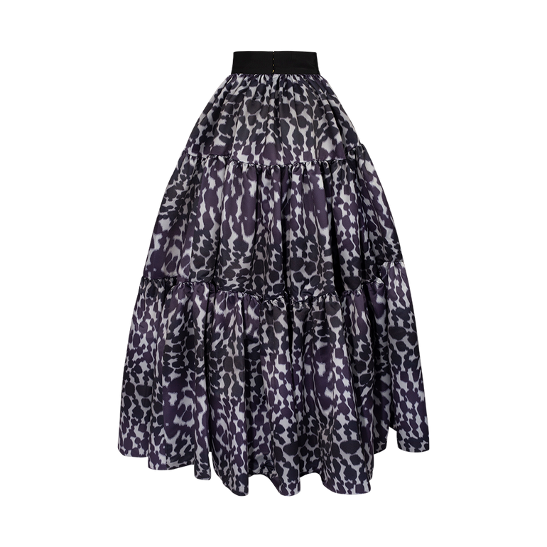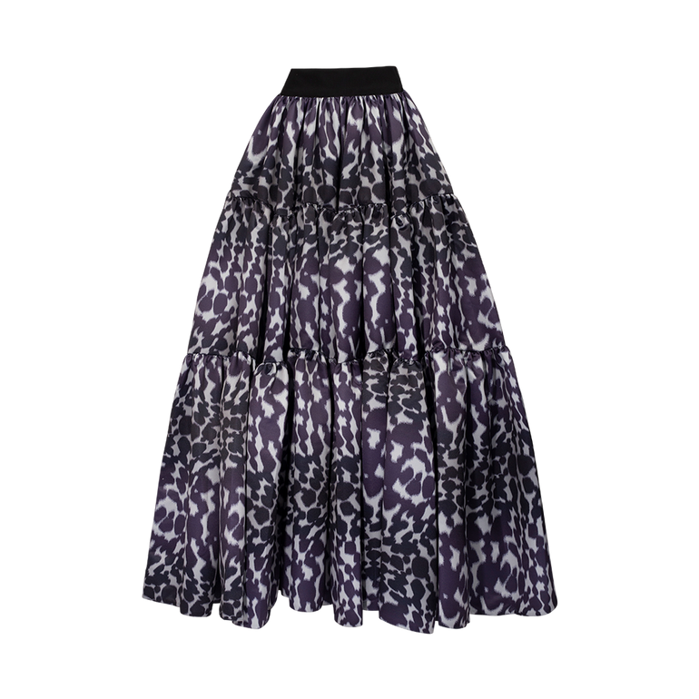 Maxi skirt in voluminous silhouette with high-rise waist and tiered design.
