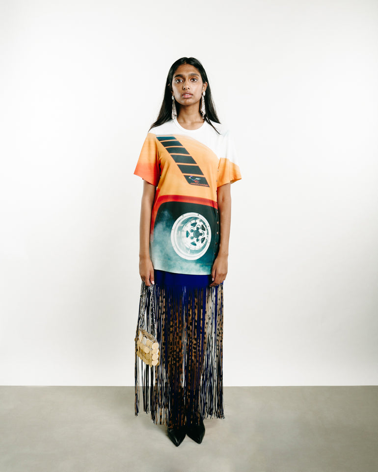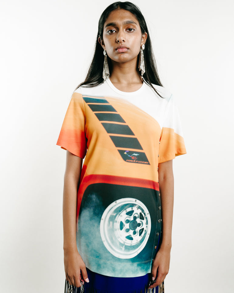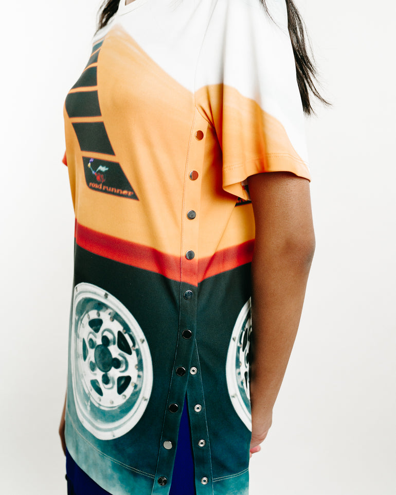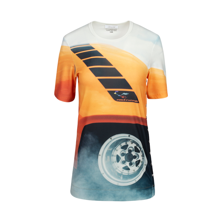 Crewneck T-shirt with short sleeves in allover "Fast Cars" graphic print.
