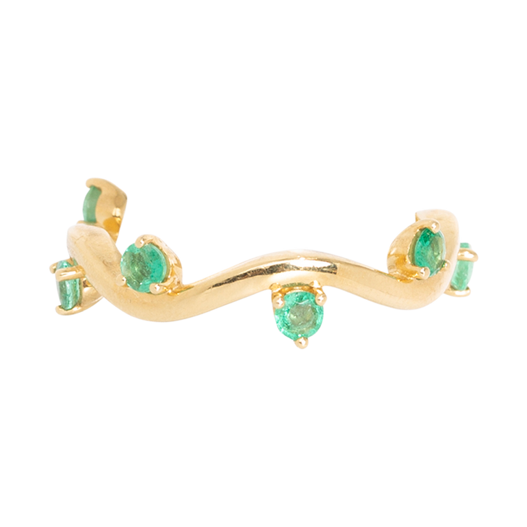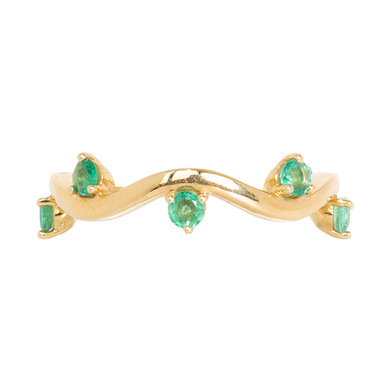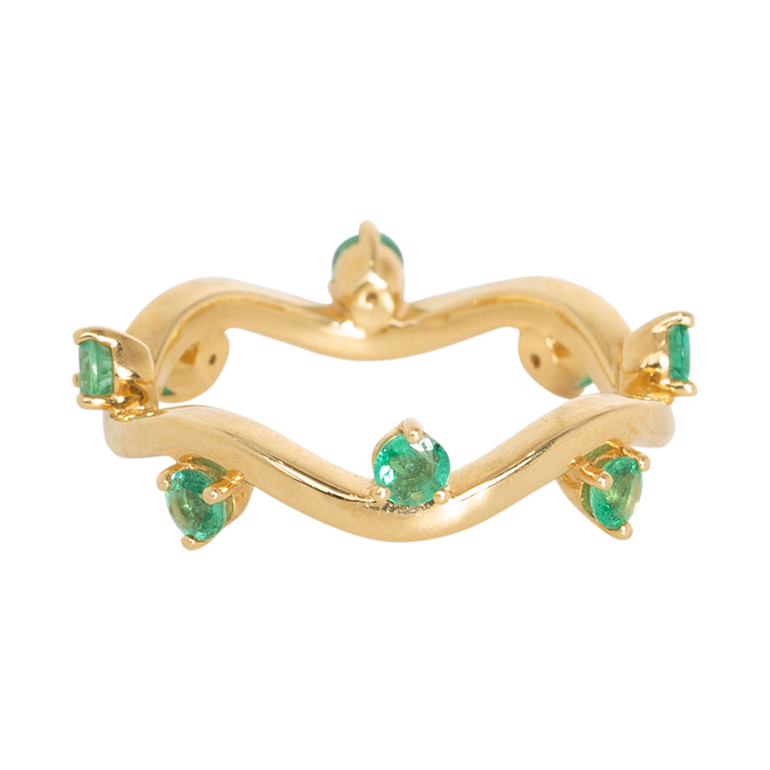 Ring in constellation design with 0.60 carat T.W. emeralds.