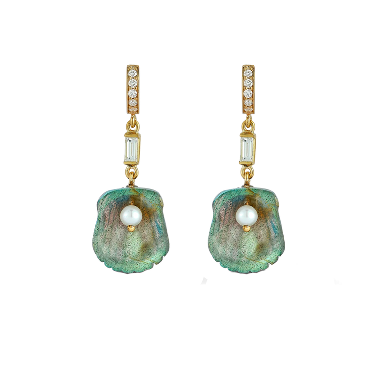 18-karat yellow gold/labradorite/cultured pearl/diamond.