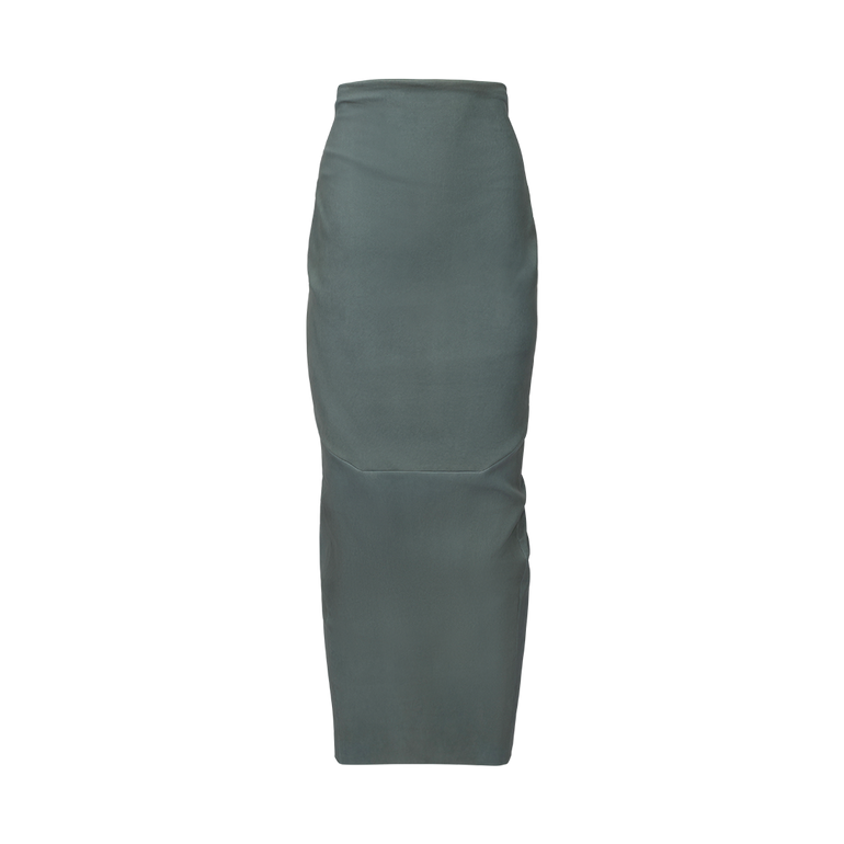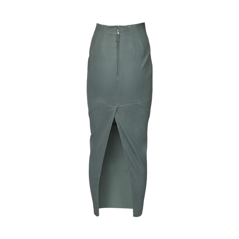 Maxi skirt in pencil silhouette with back zip and rear slit.