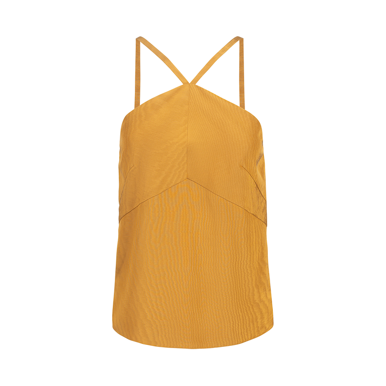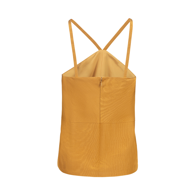Sleeveless top with delicate spaghetti straps and back zip.