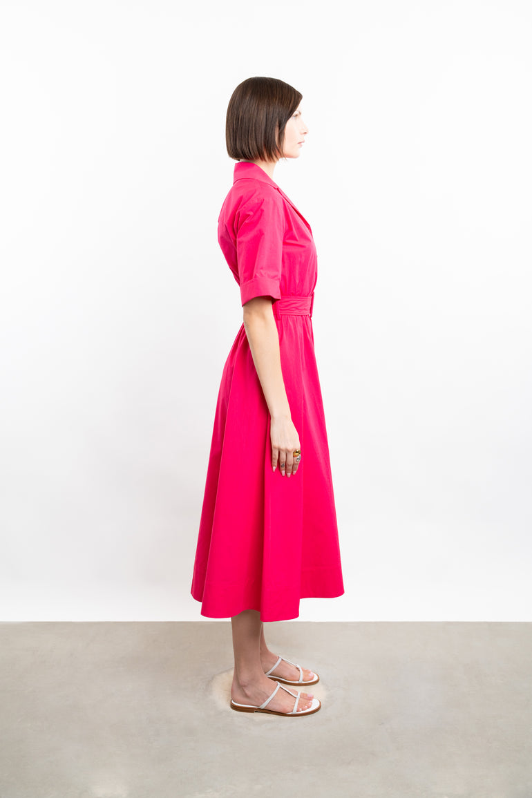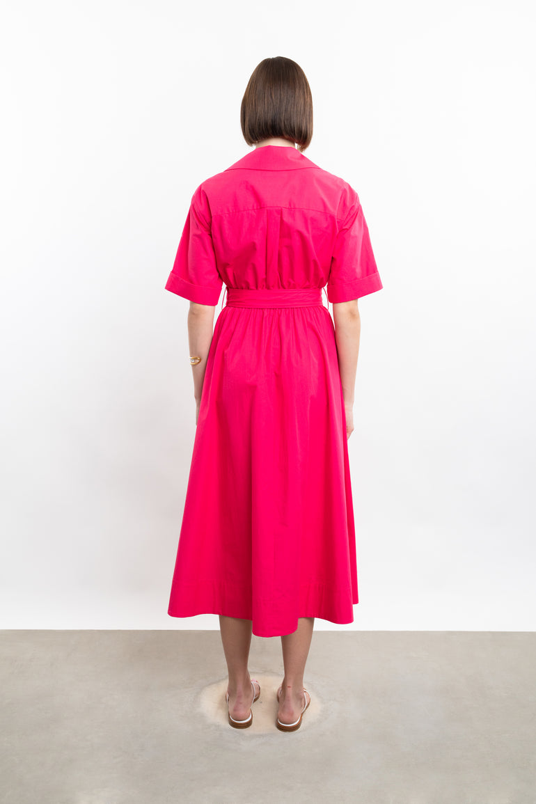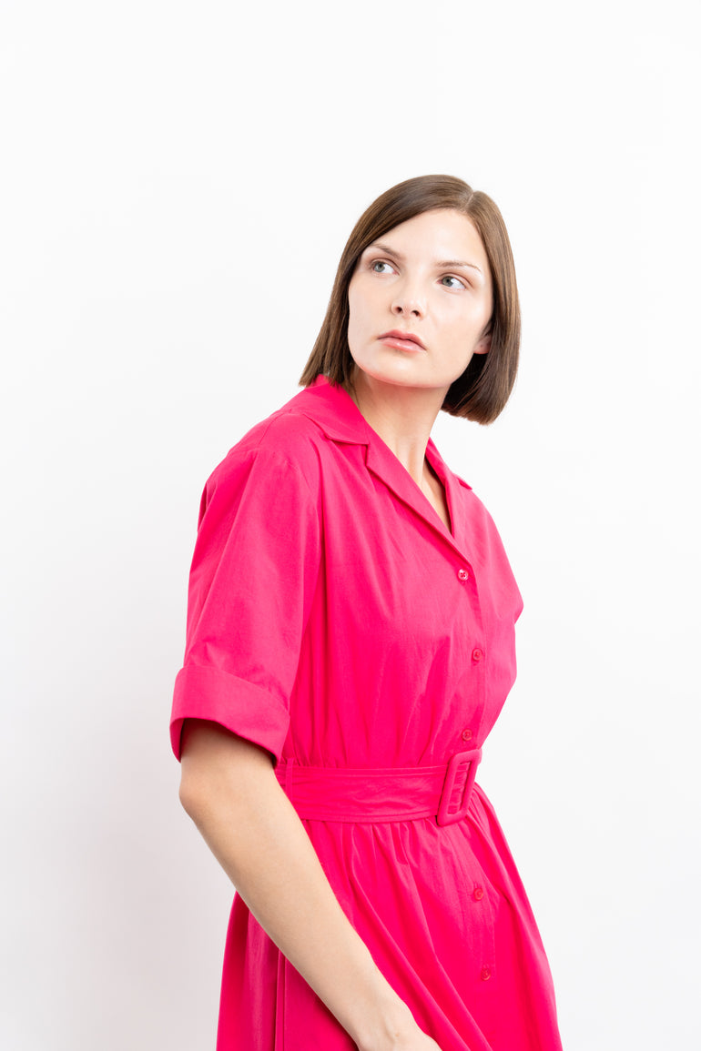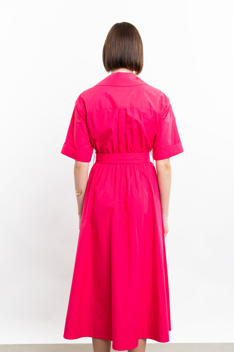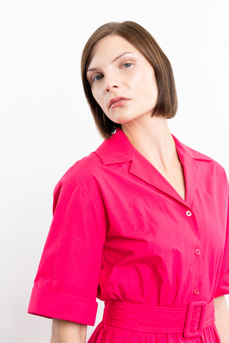 Shirtdress with structured collar, full button-down front and cinched waist with matching belt.