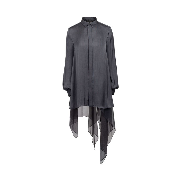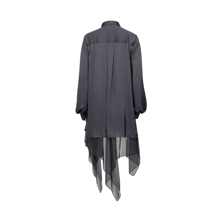 Midi dress in layered design with collar, long sleeves with buttoned cuffs, button front and dipped hem.