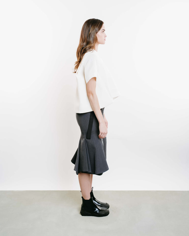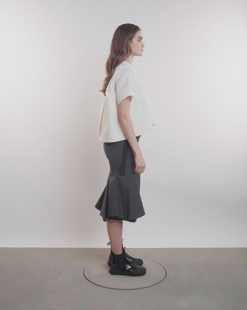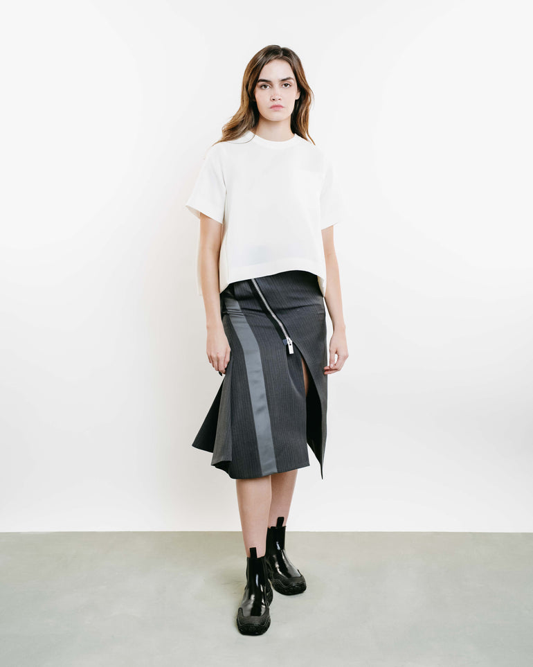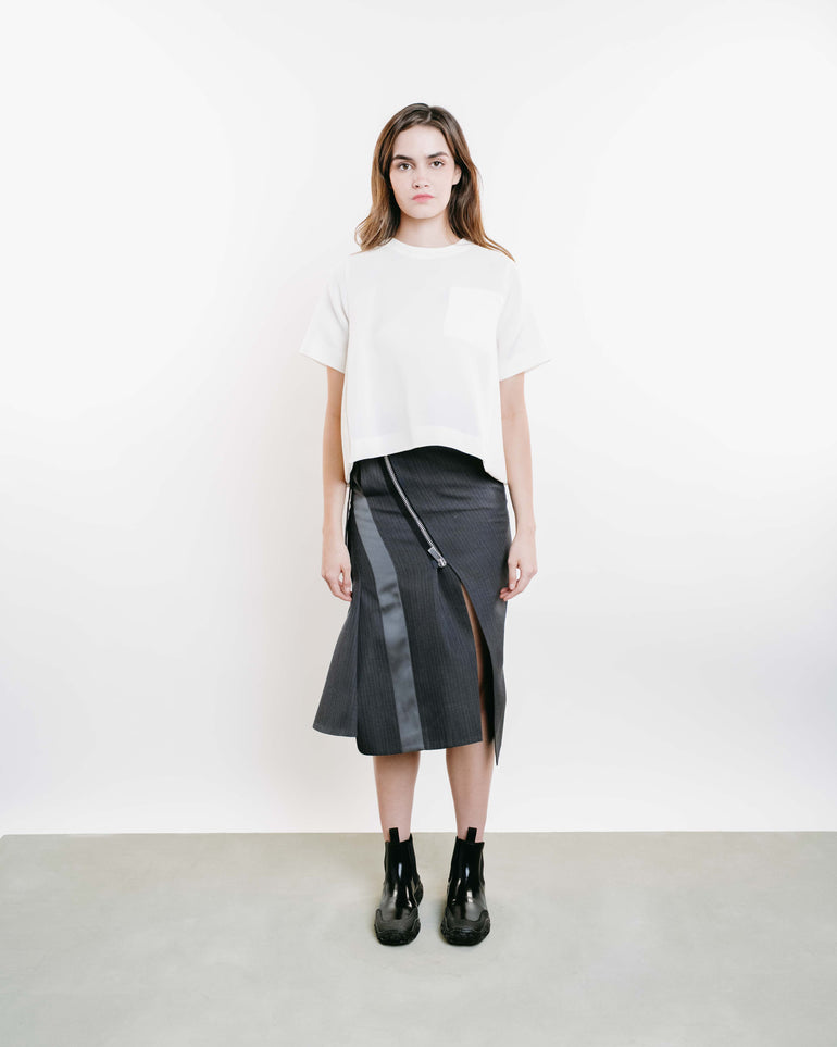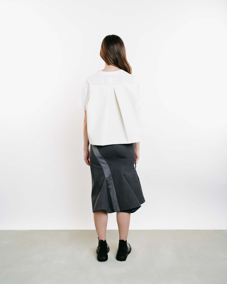 Short-sleeved shirt with chest pocket, shoulder zip and contrast back panel.