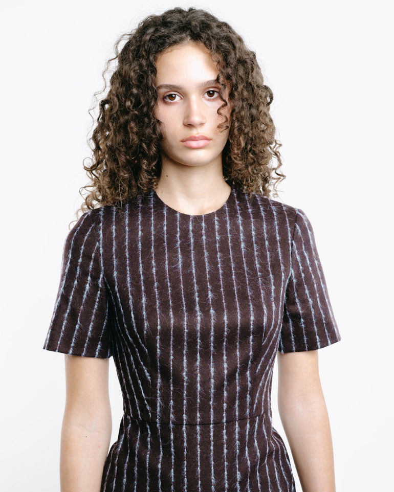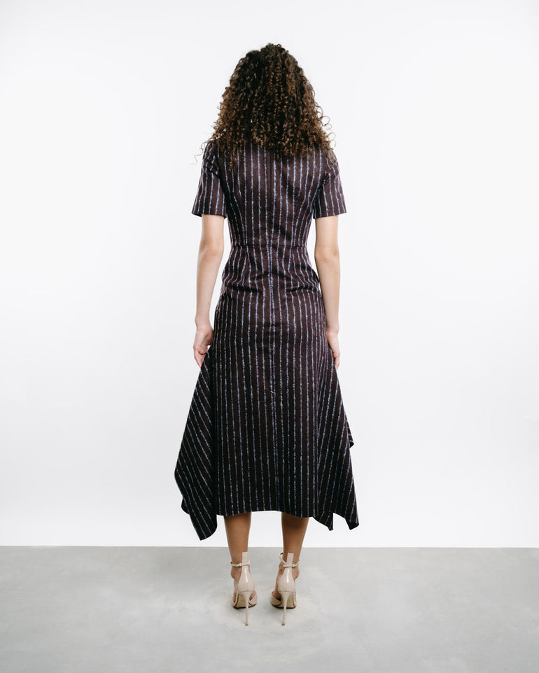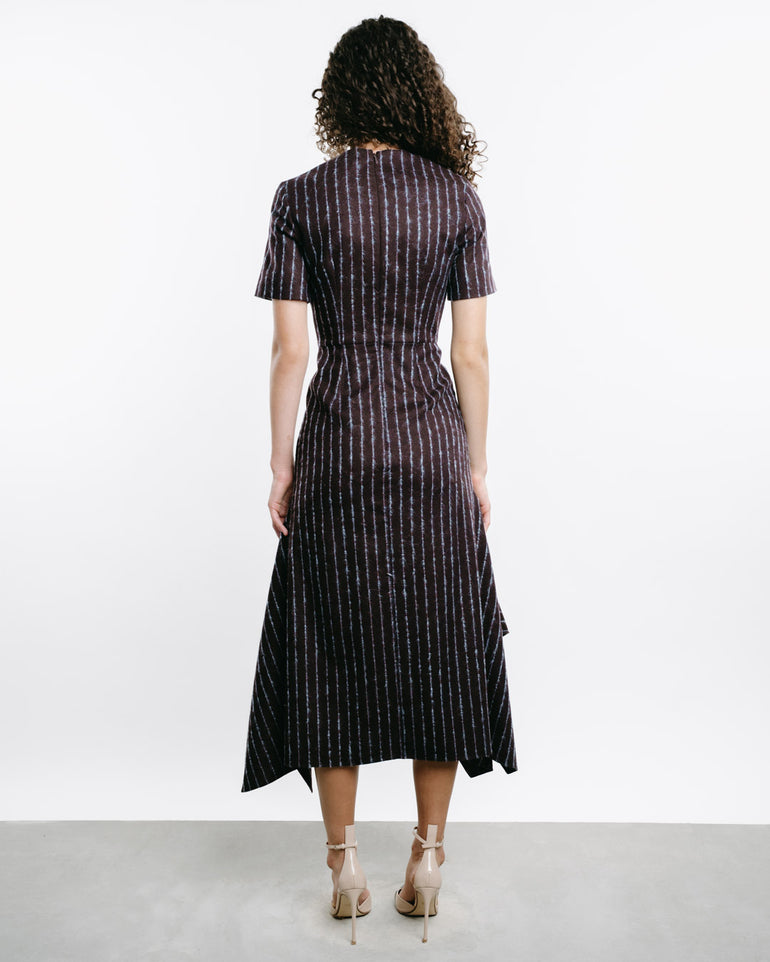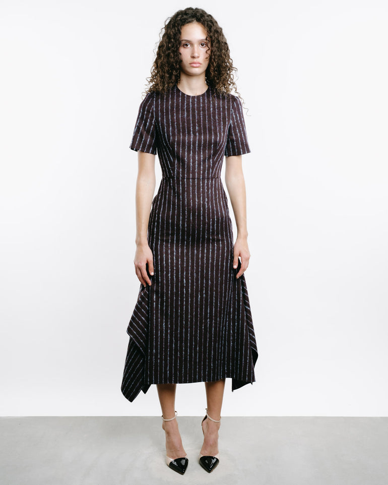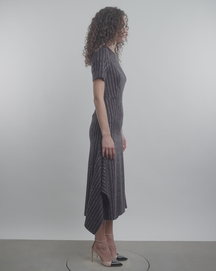 Short-sleeved midi dress with jewel neckline and concealed back zip.