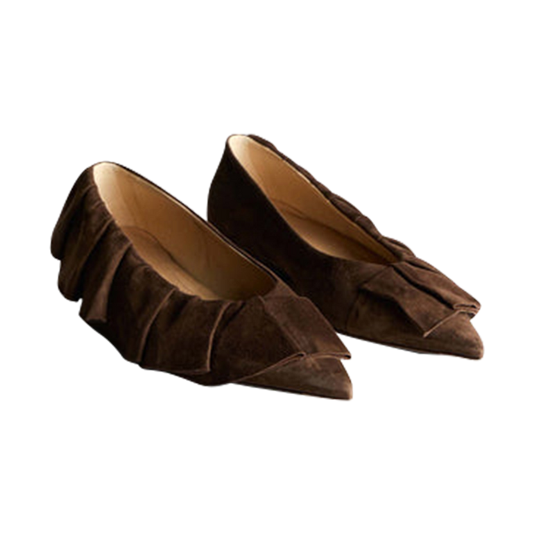 Ballerina flat with suede leather ruffles.