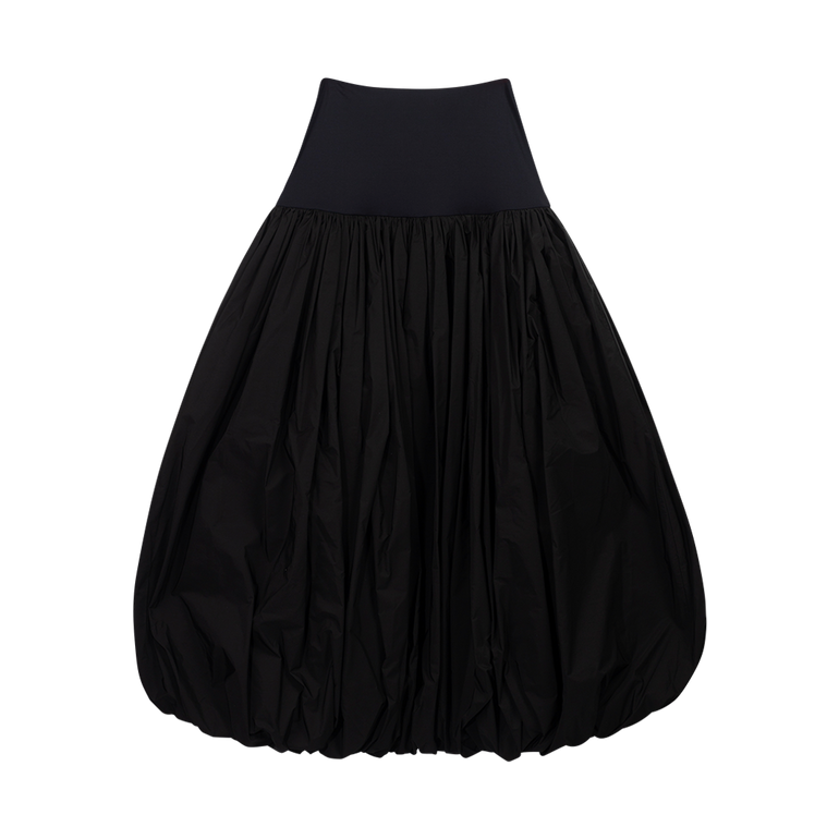 Maxi skirt with elastic waistband, drop waist and gathered bubble skirt.