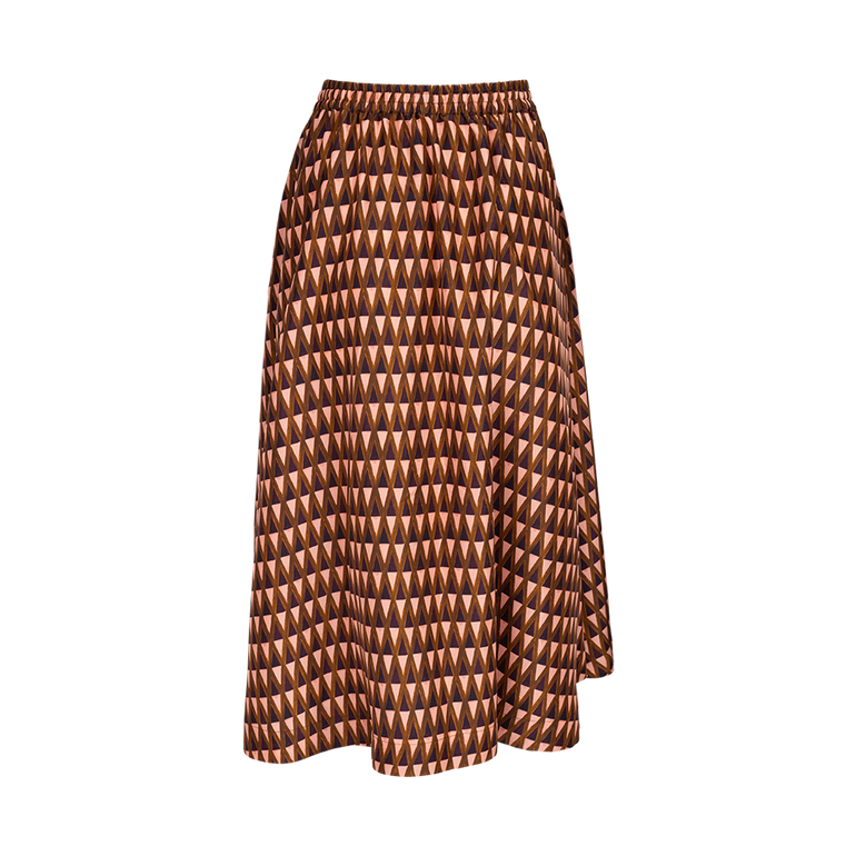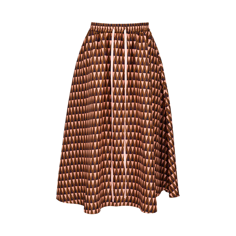 Midi skirt in allover geometric print with drawstring waist.